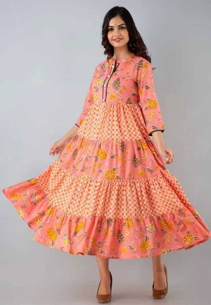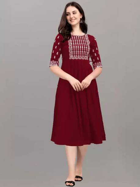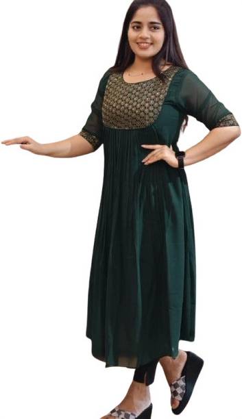There are times when you don't feel like choosing trendy tops or dresses in your wardrobe while choosing an outfit for your day. The Anarkali kurtis under 500 can come in handy during this time. Beautiful kurtis are a must-have in every woman's ethnic wear collection. This type of kurti is favoured by women of all ages. Trends come and go, but this look remains a favourite. You can choose from different fabrics, kurta length, sleeves, colours and much more. You can choose from long ankle length, mid, short, hip length, above knee, below knee, calf-length, knee-length, and more in kurta length. You can also choose from foil prints, bagru prints, block printed kurtas, classy chikankari, mottled Ikat, tropical prints, and more. You can pair this kurta with power pants and leggings and add dramatic sleeves for an edge. You can also pair a vibrant dupatta to add to the beauty of the outfit. Solid rayon and cotton rayon blend fabrics are available in the latest Anarkali kurti under 500 collection. You can also choose from a variety of sleeves, neck designs, and colours. Wear this lovely ethnic costume to a celebration or a casual get-together. Look through the Anarkali kurtis under 500 collections and choose from popular brands like LIBAS, Aurelia, W, Biba, Max, 3SIX5, and more. The information you are reading has been last updated on 10-Dec-25.