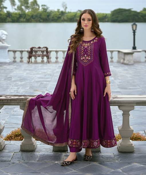 Anarkali salwar suit with its long, flowing top is an all-time favourite among most women. It is suitable for occasions, like weddings, parties, festivals etc. and is for all body types. This ethnic wear can be worn as a gown or can be worn with a dupatta and matching leggings. Available in many colours and patterns, these suits are made of fabrics like cotton, georgette, silk etc. Cotton and linen fabrics are breathable, and you can wear these as summer dresses or pair them with contrasting palazzos or skirts. For festive and wedding seasons, you can opt for the ones with heavy embellishments, zari, or stonework, to create a style statement. Silk, georgette, velvet, and fabrics that exhibit shimmer and shine, will add a touch of elegance and sophistication to your suit. You can experiment with various looks by pairing these with an embellished belt or jacket with high heels, or keep it simple by wearing minimal jewellery. You can check out the latest Anarkali salwar suit from brands like W ETHNIC, Ethnic Yard, Mert India, SHAFNUFAB, Bhumik Enterprise, and many more. You can shop for Anarkali salwar suits online and add them to the cart to enjoy home delivery.The information you are reading has been last updated on 13-Jan-26.