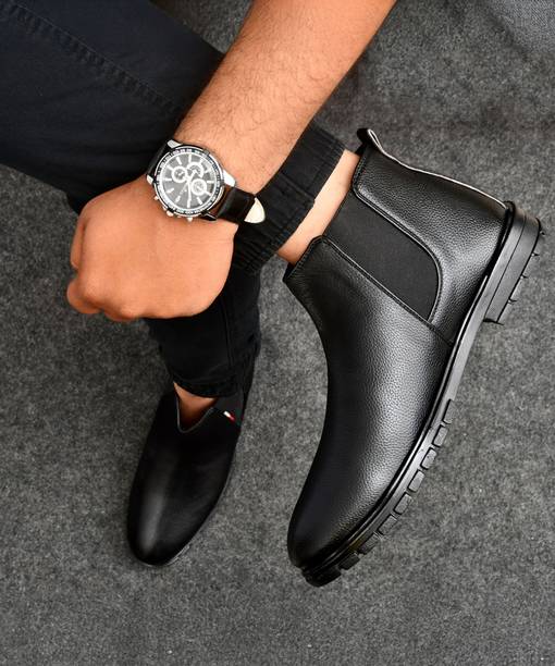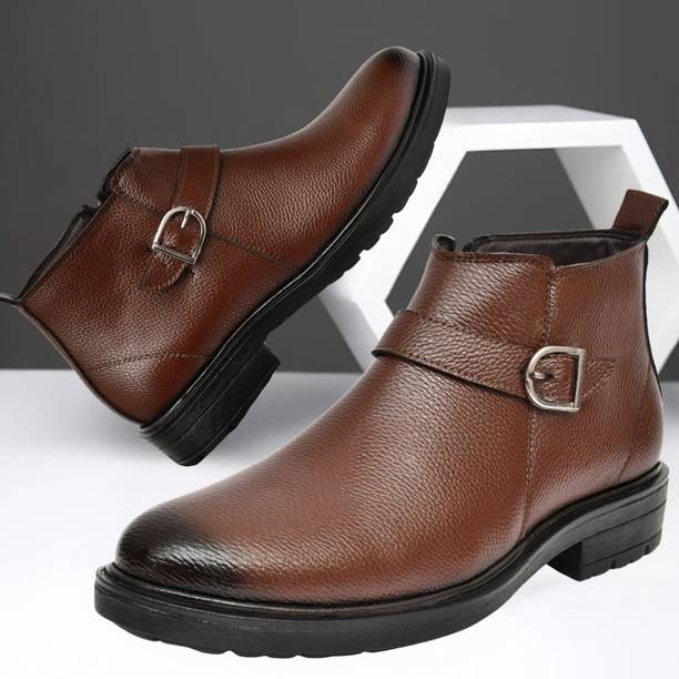 For stylish and latest patterns in shoes, check out the ankle length shoes for men available online. Trendsetting shoes are not just stylish but have a never-ending elegance. Scroll through the various themes available in the shoes and make your choice from Chelsea boots, ankle boots, suede boots, colour blocked, synthetic patent, perforations, striped, etc. The sleek and striking pattern in the shoes can be a very formidable attire coupled with formal clothing. Wear the shoes as formal, casual, or party wear by selecting and buying a desired colour combination and size option online. Check the outer material and inner materials used in the shoes, whether suede, genuine leather, air mix, comfort foam, synthetic leather, PVC, etc. The shoes can be well maintained by using a damp, clean, soft and lint-free cloth to wipe off any stain or dust collected on the surface. Depending on how often they are worn, it is vital to air dry the shoes to remove any internal odour. Choose the desired closure type, whether lace-ups, velcro straps or slip-on. Buy ankle length shoes for men online from brands like Shoe Island, Eego Italy, Shoe Day, Shoestep, Big Fox, etc.