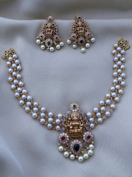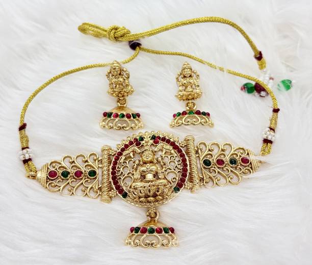 There are a number of styles under which the vintage/ antique style ornaments were made. Kundan jewellery is one such form that is often associated with the antique style. Kundan is a traditional form of Indian gemstone jewelry which has a gem set and a gold foil between the stones and the mount. Under this style there are a lot of elaborate necklaces that are available online. Brands like Sukkhi, Zaveri pearls, The Jewel box and the like make kundan jewels with great designs. Artificial temple jewelry is another antique form. These are primarily identified by very heavy design work and these will be decorated with shapes of Hindu Gods and Goddesses like Goddess Lakshmi, Ganesha, Krishna, Goddess Saraswati and the like. These are worn mainly during traditional functions like weddings, poojas, festivities like Diwali, Karthika and more. These are also used by traditional classical dancers like Bharatanatyam and Mohiniyattam dancers for their performance.
