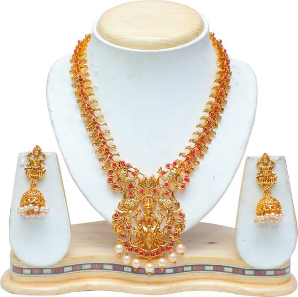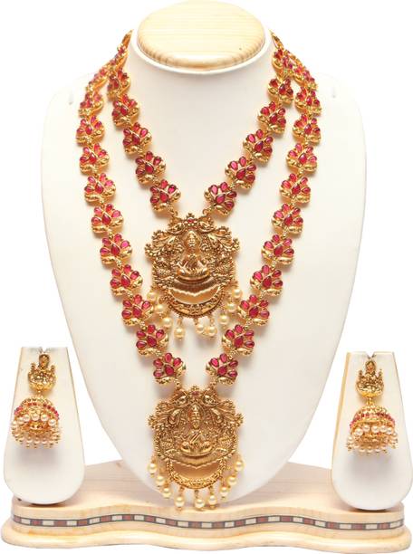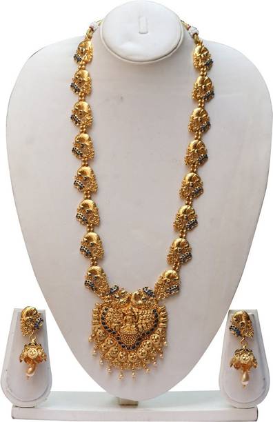 There are a number of styles under which the vintage/ antique style ornaments were made. Kundan jewellery is one such form that is often associated with the antique style. Kundan is a traditional form of Indian gemstone jewelry which has a gem set and a gold foil between the stones and the mount. Under this style there are a lot of elaborate necklaces that are available online. Brands like Sukkhi, Zaveri pearls, The Jewel box and the like make kundan jewels with great designs. Artificial temple jewelry is another antique form. These are primarily identified by very heavy design work and these will be decorated with shapes of Hindu Gods and Goddesses like Goddess Lakshmi, Ganesha, Krishna, Goddess Saraswati and the like. These are worn mainly during traditional functions like weddings, poojas, festivities like Diwali, Karthika and more. These are also used by traditional classical dancers like Bharatanatyam and Mohiniyattam dancers for their performance.