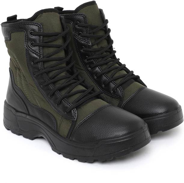 When it comes to materials, you can buy a pair made of synthetic leather on the outside and cotton in the inside. There are also leather-and denim-made boots available online. The sole materials of most army shoes are made of PU or PVC for a firm grip, comfort, and to make them lightweight, long-lasting footwear. These boots are ankle-length footwear that come with lace-up closures to ensure improved support to prevent injuries. When it comes to colors, you can buy a pair of black, green, or olive army shoes. There are also camouflage prints army boots and multicolored shoes that are available on e-stores. You can check out the boots’ prices on e-store and buy a pair using safe and secure online payment options.