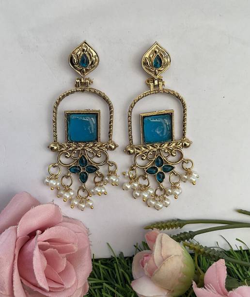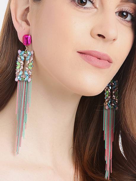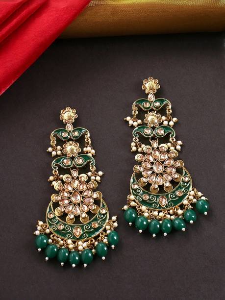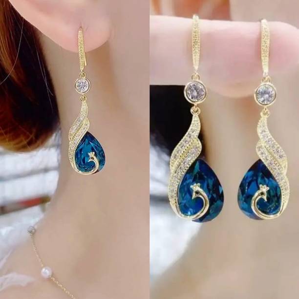 These earrings complement evening wear and look good with both Indian and western outfits. These are quite noticeable and can transform your plain look in to a glamorous one instantly. You can also pick dangle drop earrings that complement modern styles.