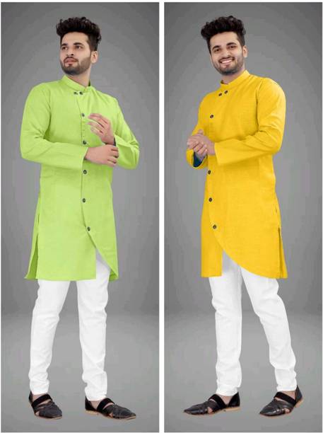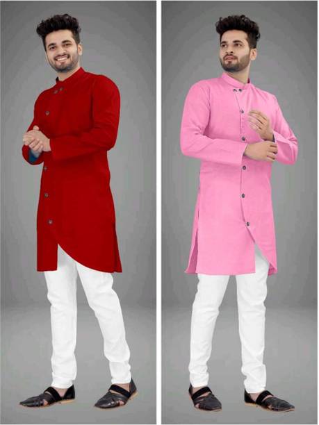 DIAMOND CLUSTER Men Solid Asymmetric Kurta
