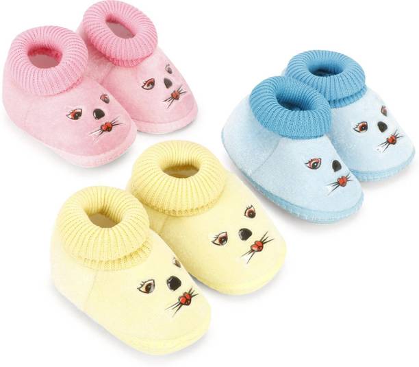 Select from a variety of baby booty products for your little boys and girls to dress up the little ones adorably. These booties provide comfort, style, and protection to those little feet. You can select from several themes and style options available online. From the charming astro dust and fairy white for a touch of magic to the rugged into-the-wild prints and plaids and checks for a playful outdoor look, these booties allow you to select cute footwear options for youngsters. Not only do these baby booties come in various themes, but they are also available in trendy colours to suit different outfits and occasions. Additionally, you can opt for adorable cartoon character prints like Angry Birds, Barbie, Avengers, Hello Kitty, Looney Toons, Frozen, and many more, adding a touch of fun and familiarity to your little one's attire. Choose your favourite designs in shoes available at varied prices. You can find booties designed in line with the latest fashion, ensuring that your baby stays comfortable. It is also best to check whether any offers are available on these shoes. Shop baby booty products online from a variety of brands, like Baby Moo, Shoemate, Chinmay Kids, Sanjeet Fashion Hub, Zenith Star, Tiny Bugs, and more.