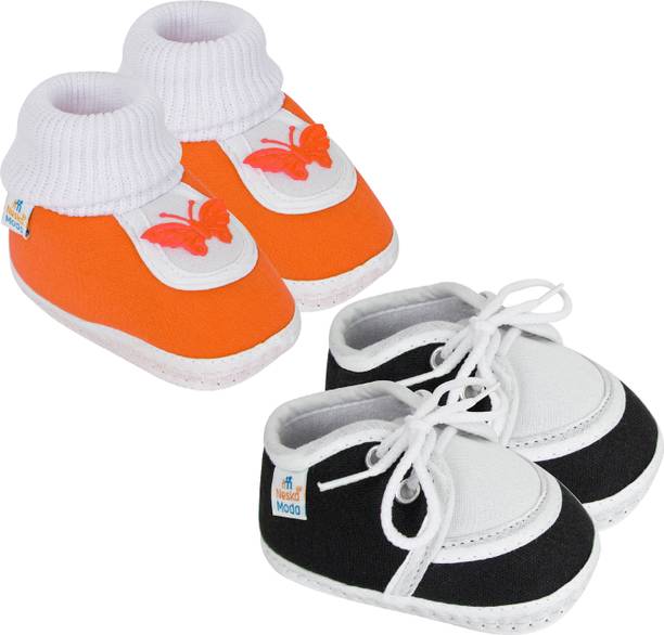 Baby shoes are probably one of the last things in your mind when you are shopping for a baby. While booties and other soft footwear like slip-ons are acceptable when a baby is crawling, it's time to get them their first pair of walking shoes, running shoes, or sneakers once they stand upright and begin walking. While they're learning to walk on their own feet, shoes give traction and help them avoid slipping and sliding. You can get different shoe closures like velcro, lace, zip, slip-on, etc., with amazing offers online. You can find the latest baby shoes (in) new styles at brands like Miss & Chief, Campus, Bata, Neobaby, Smartots, and many more. Purchase bellies with interesting cartoon prints on them to add an engaging element to the footwear. Various cool sneakers and boots in different colours are available online to match the outfit. Babies enjoy sparkling lights and shoes that make sounds; you can find and buy these types of shoes online. Try purchasing classic and elegant pairs of shoes for parties and simple and casual ones for daily use at the best prices. These baby shoes are available for both baby girls and boys, from infants to the age of two. The information you are reading has been last updated on 17-Oct-25.