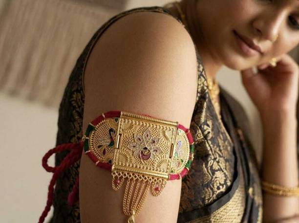 The Indian woman’s love for jewellery is as legendary as the history of the ornaments that they wear. The baju band is one such piece of jewellery. Marked with traditional and mythological motifs, the baju band is a great piece of ornament that is usually worn on the arms to make a style statement. Different from bangles, the bajuband is an accessory that is worn to accentuate a modern sleeveless dress or a traditional attire. The bajuband, due to its varied designs and style, tends to lend a rich and royal look to the wearer.