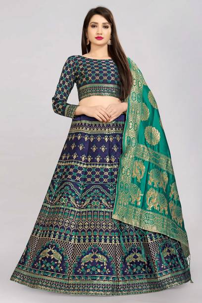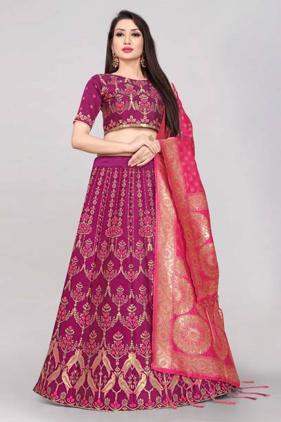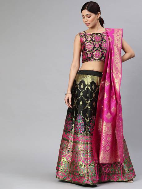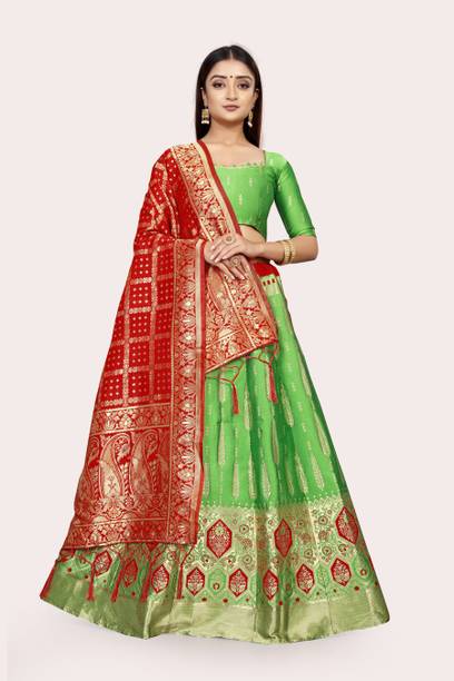 Banarasi lehenga is a symbol of timeless grace and elegance. It offers a magnificent array of choices, ideal for various occasions. Available in different colours and finishes, these lehengas combine traditional and contemporary styles, designed to make you stand out. Crafted from a variety of materials, including chanderi silk, chiffon, viscose blend, georgette, cotton blend, pure silk, and silk blend, among others, these trendy lehengas have rich textures and exceptional quality. In addition, the diverse patterns, like embroidered, paisley, and floral prints, can offer you some of the best looks at casual gatherings, weddings, parties, or any festive celebrations. Apart from that, several of these lehengas come with a matching dupatta, giving you the flexibility to customise your ensemble. Not only can you choose your preferred colour and pattern, but you can also select from various sleeve lengths, including short sleeves, full sleeves, sleeveless, three-quarter sleeves, and half sleeves. This ensures that your lehenga complements your comfort and style. Choose the latest style available in different price ranges. Shop Banarasi lehengas online from Divastri, Dishwa Fashion, Jay Bajrang Fashion, Khunshi Creation, Navnidhi Fashion, Tishta Outfit, and more. Elevate your fashion quotient with these beautiful attire options.The information you are reading has been last updated on 21-Oct-25.