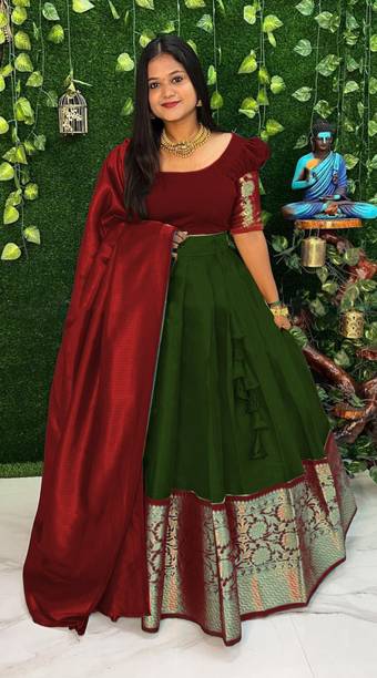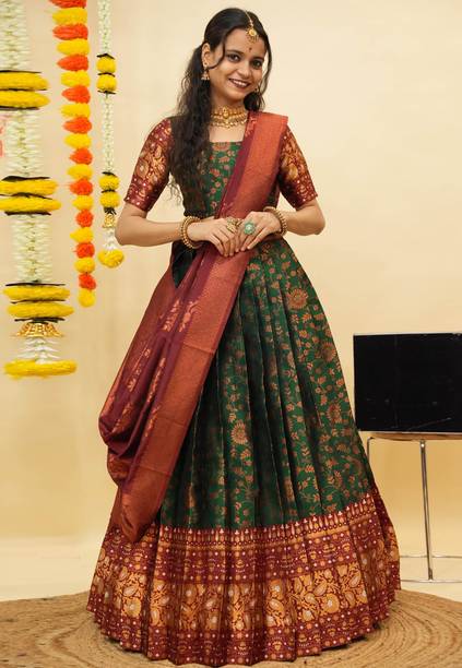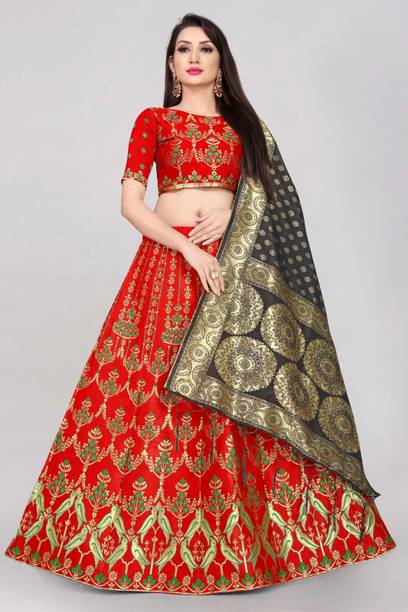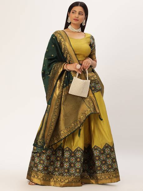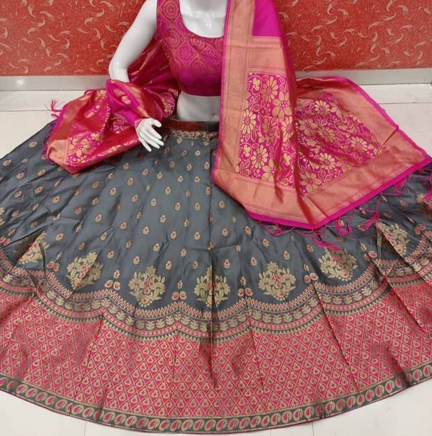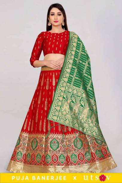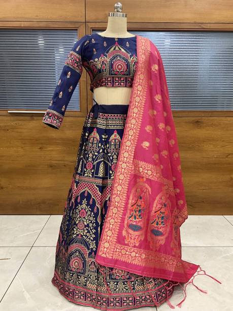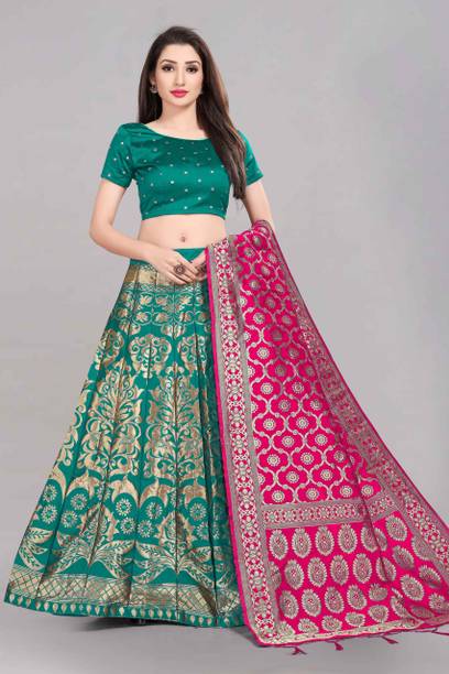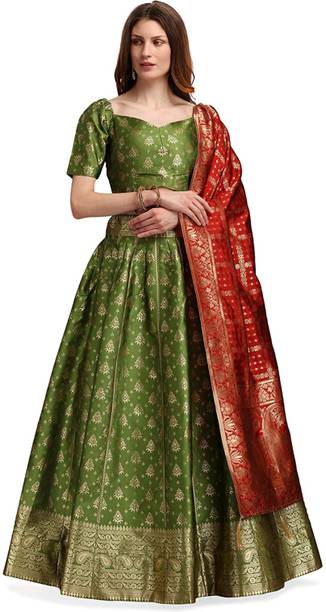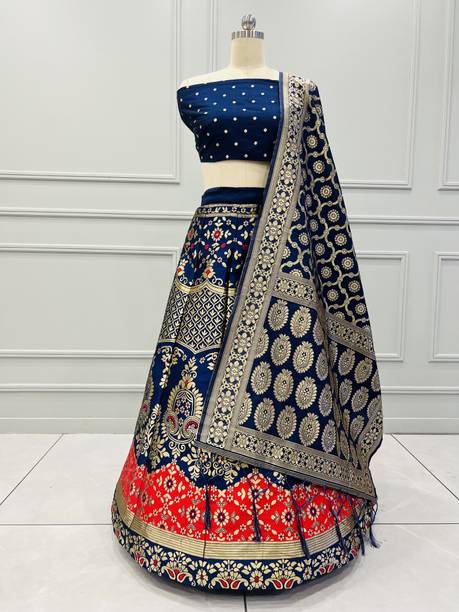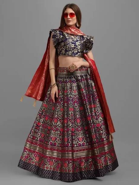 Banarasi lehenga is a symbol of timeless grace and elegance. It offers a magnificent array of choices, ideal for various occasions. Available in different colours and finishes, these lehengas combine traditional and contemporary styles, designed to make you stand out. Crafted from a variety of materials, including chanderi silk, chiffon, viscose blend, georgette, cotton blend, pure silk, and silk blend, among others, these trendy lehengas have rich textures and exceptional quality. In addition, the diverse patterns, like embroidered, paisley, and floral prints, can offer you some of the best looks at casual gatherings, weddings, parties, or any festive celebrations. Apart from that, several of these lehengas come with a matching dupatta, giving you the flexibility to customise your ensemble. Not only can you choose your preferred colour and pattern, but you can also select from various sleeve lengths, including short sleeves, full sleeves, sleeveless, three-quarter sleeves, and half sleeves. This ensures that your lehenga complements your comfort and style. Choose the latest style available in different price ranges. Shop Banarasi lehengas online from Divastri, Dishwa Fashion, Jay Bajrang Fashion, Khunshi Creation, Navnidhi Fashion, Tishta Outfit, and more. Elevate your fashion quotient with these beautiful attire options.The information you are reading has been last updated on 17-Oct-25.