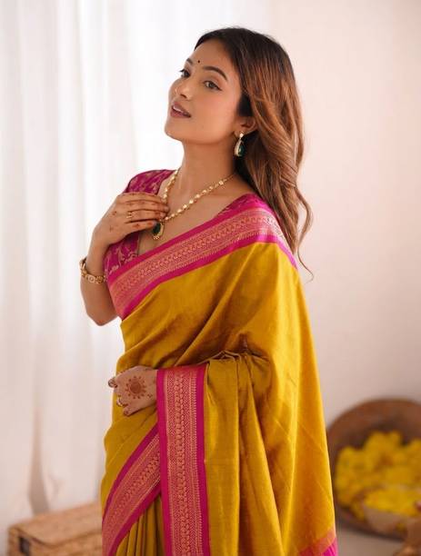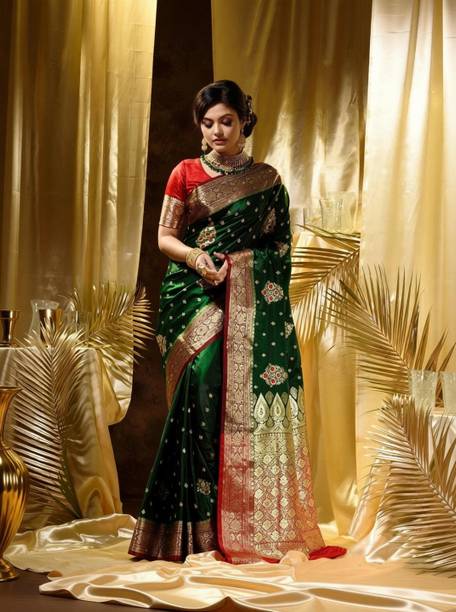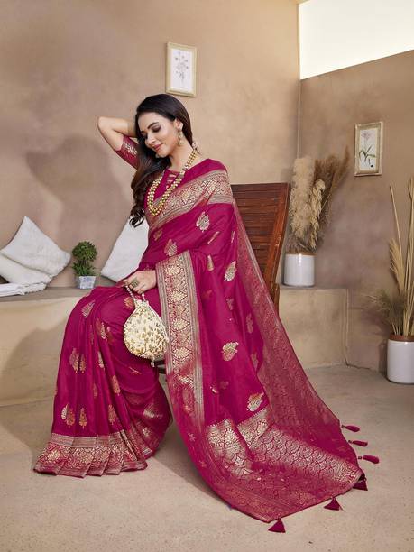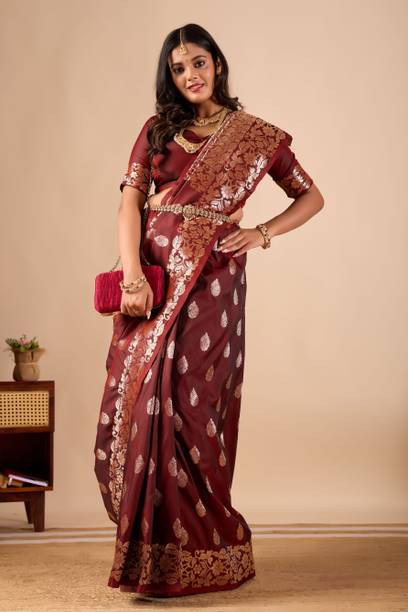 Banarasi silk sarees are considered one of the finest traditional attire in India. Indian women mostly wear them on special occasions. They are also a favourite choice among Indian brides of all cultures. There is a distinctive floral and foliated pattern in each of these sarees. It is well-known for its design and zari work (gold and silver brocade). You will also find jhallar (string of upright leaves) prints in many of these sarees. Check out the attractive collection of banarasi sarees at the e-store. Their features include heavy work of gold, metal visual effects, small detailed figures, and compact weaving. These sarees are a little heavy to carry due to the designs and weaving. You get a choice of patterns like embroidered, printed, checkered, geometric pattern, woven, self-design, floral print, etc. From the online store, you can buy a pack of up to 10 sarees. Blouse pieces may or may not come with some of these sarees. Pairing heavy pieces of jewellery will perfectly complement these ethnic attires. You can also gift these sarees to your loved ones. Sarees from brands like SAARA, Fabwomen, Divastri, 3SIX5, Cosbila Fashion, etc., are available online. Select from a diverse variety of patterns, colours, brands by filtering your options. Buy the Banarasi silk sarees from the many options and get them delivered home directly. The information you are reading has been last updated on 19-Jan-26.