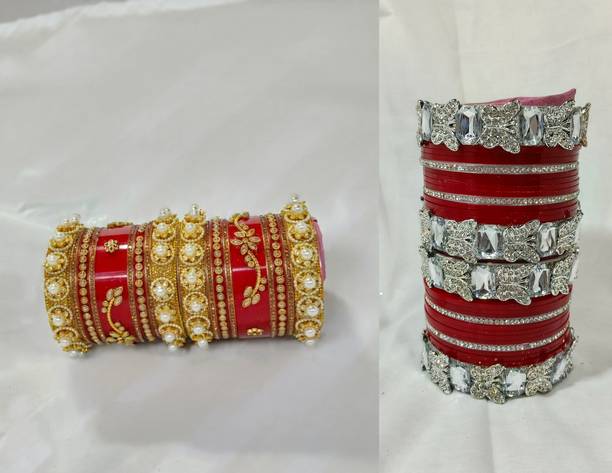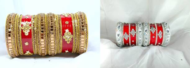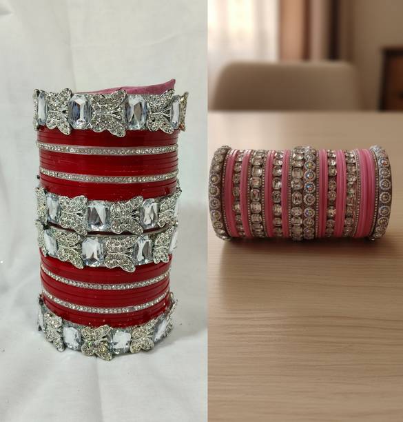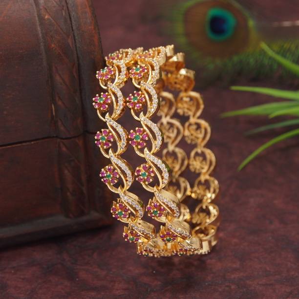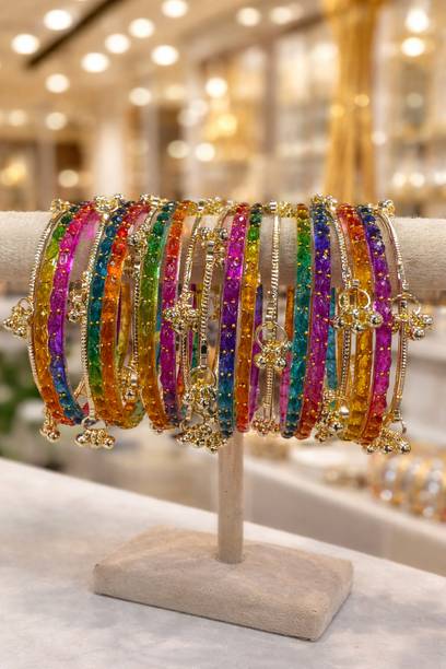 Be it traditional wear or Indo-western; accessories form an integral part of every single look. To uplift your personality, bangles are perfect add-ons that magnify your outfits on special days. Add glamour to your ethnic wear by selecting from the unique collection of such beautifully decorated pieces with glass beads, pearls, crystals, silk threads, cubic zirconia, diamonds, and much more. Pair the stylish, trendy, and heavy chudas with the Rajasthani poshak, sarees, lehengas, and other traditional wear to flaunt your style. You will find a wide range of designer alloy gold-plated, light-weight silk knitted sets, openable, stone-studded ornamental sets, etc., for memorable events. Choose from the numerous kadas for routine use that complement your western look. Created from different metals and materials such as copper, alloy, brass, silicone, glass, leather, and many others, they easily blend with your look for weddings, receptions, sangeets, parties, and other special occasions. Browse through exclusive styles for the latest bangles, and pick from top brands like YouBella, ZENEME, Shining Diva, Sukkhi, Modak, and many more. Embellish your attire with monochromatic, vibrant, pastel, and multi-coloured bangles. Shop online to enhance your fashion quotient instantly. The information you are reading has been last updated on 06-Apr-26.