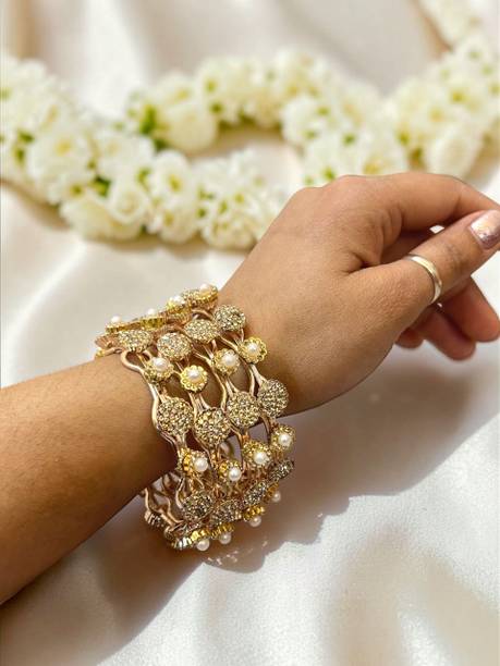 Are you ready to flaunt your style with elegant accessories? If yes, you have a wide range of bangle sets to choose from. Whether it is a cultural celebration, a festival, a wedding, or a casual purpose, you can find a wide collection of bangles available online. These sets of bangles can be of different designs, colours, embellishments, themes, and many more. While scrolling, you can see bandles in ethnic and contemporary designs available in different platings and studds. From simple and solid designs to ones with crystals, pearls, and kundan embellishments, you can explore a large variety to match your outfit and look. Additionally, there are a set of two to dozens to choose from. You can arrange these sets of bangles in various orders to create various looks. Furthermore, these bangles are available in different materials, including metal, plastic, glass, alloy, fabric, and more. You can choose them based on their durability and your personal preferences. You can also check the options like adjustable features, clasp types, sizes, and more to make an informed decision. Some of the brands that sell these bangles include Shiv Enterprise, Manikya, Kaima, Rajwadi, Sukkhi and more. Explore and buy the ideal bangle sets online today to elevate your unique styles on various occasions!