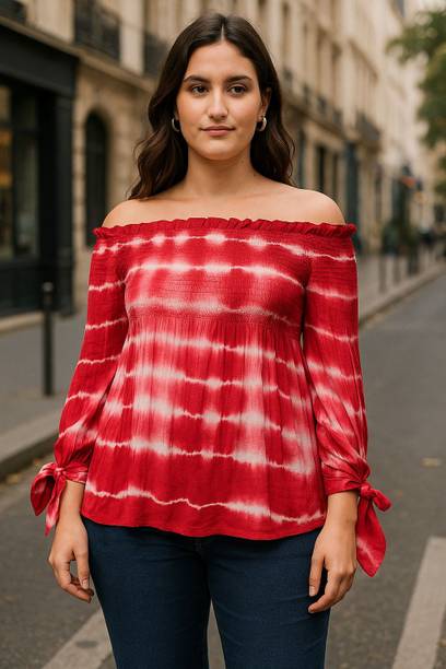 Bardot tops are off-shoulder tops that can make you look effortlessly stylish. These tops accentuate your femininity. Embrace the fashion trends with these tops. Choose from a variety of bardots from brands like Selvia, HARPA, SASSAFRAS, PEOPLE, Miss Chase, Urban Creation, and many more in soothing pastel colours and tuck them into a long midi skirt. You can also opt for stacked tops with a loose fit. Choose from different styles such as boat necks, one shoulder, tube neck, strapless, and V-necks. Strappy heels and a simple clutch purse complete the look. Whether fashion crops, printed ruffles, stripe print blouses, colorblock tops, floral AOP tops, solid crop tops or cottage cores, each theme comes in various colours, designs, and sizes. You can shop for the latest Bardot top online from a variety of materials, including satin, viscose, cotton, lycra, lace, chambray, georgette, polyester, and more. Bardot tops are wardrobe essentials that can be used for different looks, from business casuals to college wear. You can order from the comfort of your own home or office for these tops. Place your order online and enjoy a stress-free shopping experience. Get these gorgeous tops delivered to your door without any hassles. The information you are reading has been last updated on 09-Dec-25.