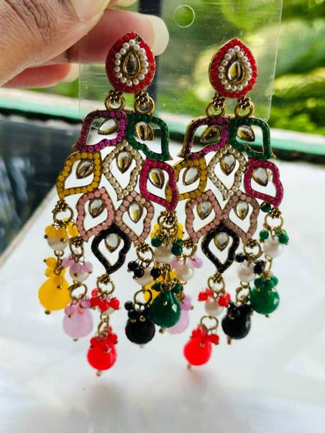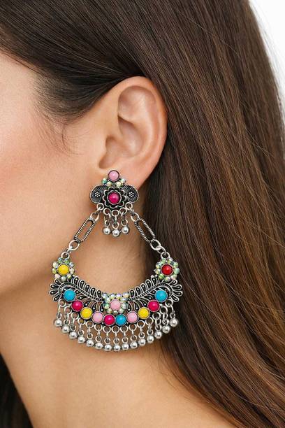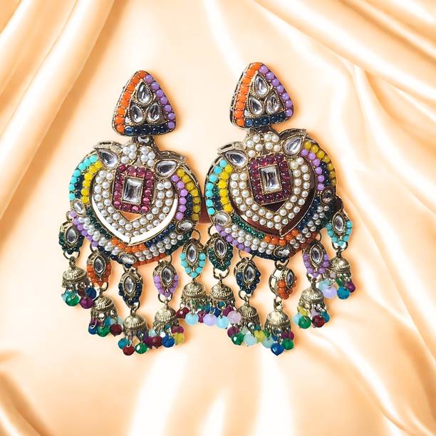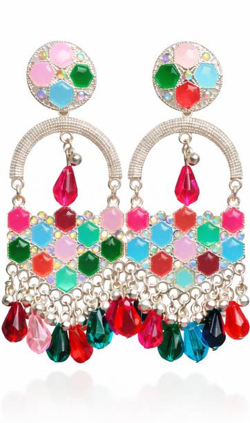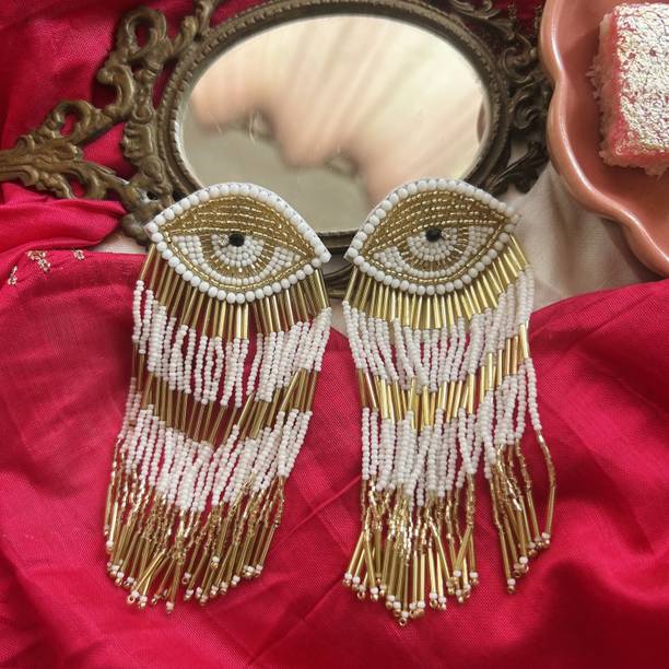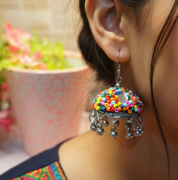 These type of earrings are most commonly worn by girls and women in their teens and twenties. The beaded mirror earrings come in a variety of shapes like triangles, circles, squares and so on.