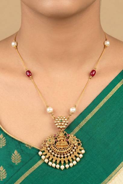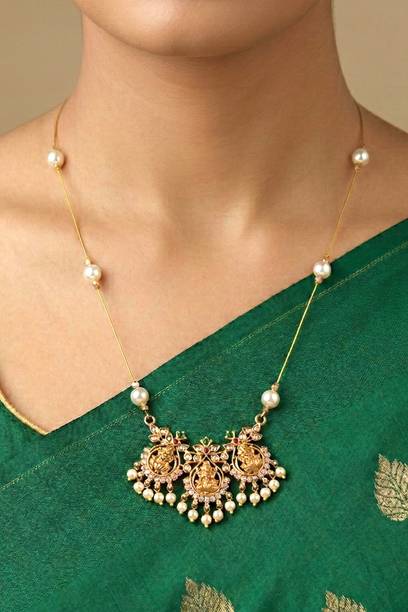 There are also beads necklaces and chains made of semi-precious gemstones. Amethyst, cat’s eye, aquamarine, pearl, emerald, and turquoise are among many other gemstones used for making beaded jewellery. You can find these necklaces and jewelleries made and sold by brands like Gehna, Reiki Crystal Products, Ati Jewels, and The Jewel Box among many others.