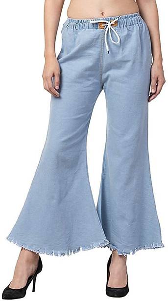 Flared jeans or bell-bottom jeans can level up your fashion game. Such pairs of denim pants can suit varied requirements. You can opt for these jeans, as they are easy to roll up and create an edgy look with sturdy boots. With various benefits and a flattering silhouette, bell bottoms are a must-have in your closet. Whether you're embracing retro vibes or looking for a fresh take on denim, bell bottoms offer endless possibilities. Brands that sell these women's jeans online are Roadster, Sassafras, Metronaut, Miss Chase, German Club, and others. Their unique silhouette ensures that you can pair these jeans with various upperwear choices. Bell bottoms are a chic option that can be sported on diverse occasions. You can find these pants in patterns like solid, washed, self-design, printed, and others. These wide-leg jeans are a timeless wardrobe staple known for their versatility and flattering fit. These jeans offer a breezy and casual aesthetic that is ideal for hot days or casual outings. Denim pants come in various styles, ranging from classic cuts to more stylish interpretations with distressed finishes or embellishments. If you are attending a brunch, team these pants with cropped tees and sneakers. However, on winter days, you can style these jeans with cardigans and boots. With their ability to combine comfort, versatility, and style, bell bottoms embody the essence of contemporary femininity and celebrate the enduring appeal of denim as a fashion staple. Apart from these pants, you can also find palazzo pants that ensure comfort and look stylish.