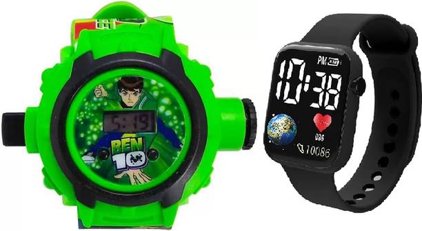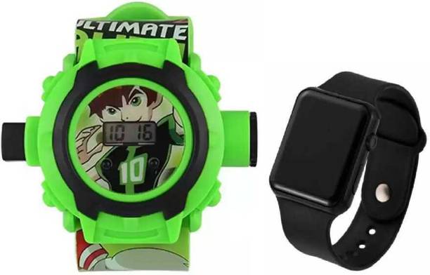 A to Z QUALITY ASSURED - Kids Special Favourite Toys - Pack of 2 - Benton ( BEN 10 ) Projector Band Watch + Jelly Slim Black Digital Led Band Watch for Kids, Children Digital Watch  - For Boys & Girls