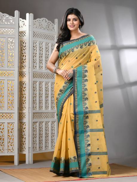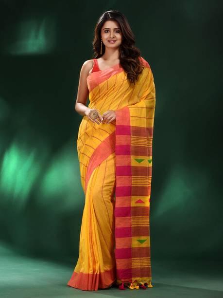A Bengali saree can be a versatile addition to any Indian woman's wardrobe. These sarees effortlessly blend ethnic and contemporary styles, making them suitable for diverse occasions. While searching for more options, you can find an array of sarees such as Jamdani, Banarasi, Kanjivaram, Madhubani, Kalamkari, Kovai, and many more. The Bengali ethnic wear is often adorned with different embroidery works, prints, embellishments, colourblocks, checkered work, and so on. Whether you are attending a casual event, a wedding, or a party, these trendy sarees provide proper comfort and style. Also, you can get these attire options in various latest styles, including nine-yard, half-and-half, and ready-to-wear options. These drapes accentuate your beauty and allow you to move gracefully and confidently. These sarees are available in various fabrics like art silk, Chanderi, chiffon, cotton blend, cotton jute, and many more. Elevate your ethnic wear collection with sarees from brands like Divastri, Desh Bidesh, Buymyethnic, Aahiri, and many more. This wide array of Indian attire options comes in various price ranges. Explore the diverse themes, colours, and styles to find the best-suited sarees for your upcoming events. Before placing the order, you can check if there are any offers available. Buy Bengali sarees online, enhance elegance, and make a unique fashion statement.