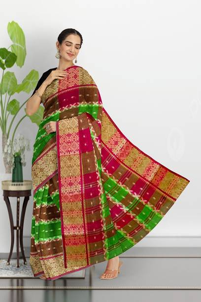 Though one cannot trace back to a specific date and time with regard to its origin, these sarees were quite popular during the time of the Mughals. Bengal sarees can be classified into two types - Baluchari sarees and Tant sarees. The Baluchari type originated from a small village in Bengal named Baluchari. Both these types of sarees try to bring out the rich tradition of Indian culture through its making. A lot of these sarees have pallus that represent different scenes from various mythological tales. Some of these sarees also come with delightful borders that include intricate floral patterns, geometric prints and checkered patterns. Baluchari sarees are usually made with cotton or silk. The Tant range of sarees are weaved with a cotton thread and is comparatively more transparent.