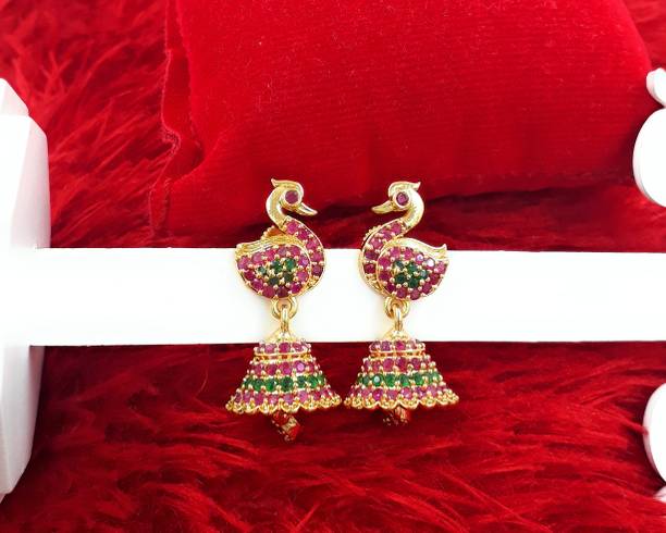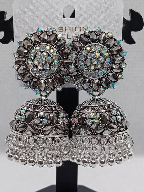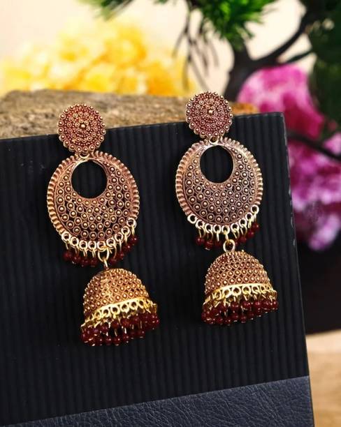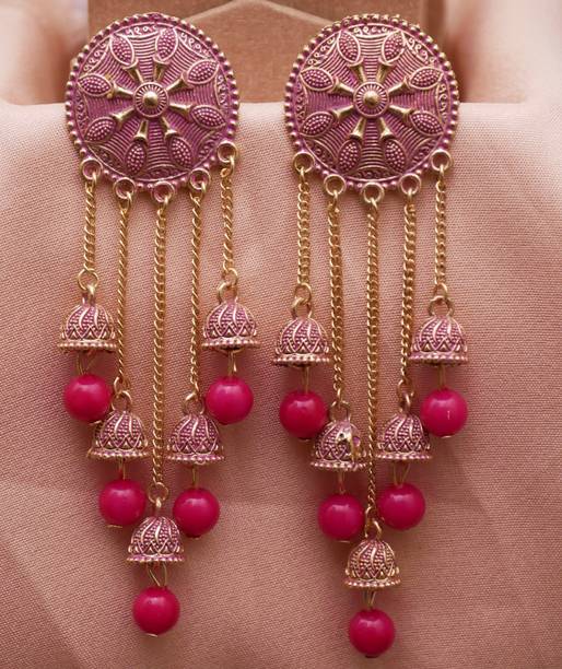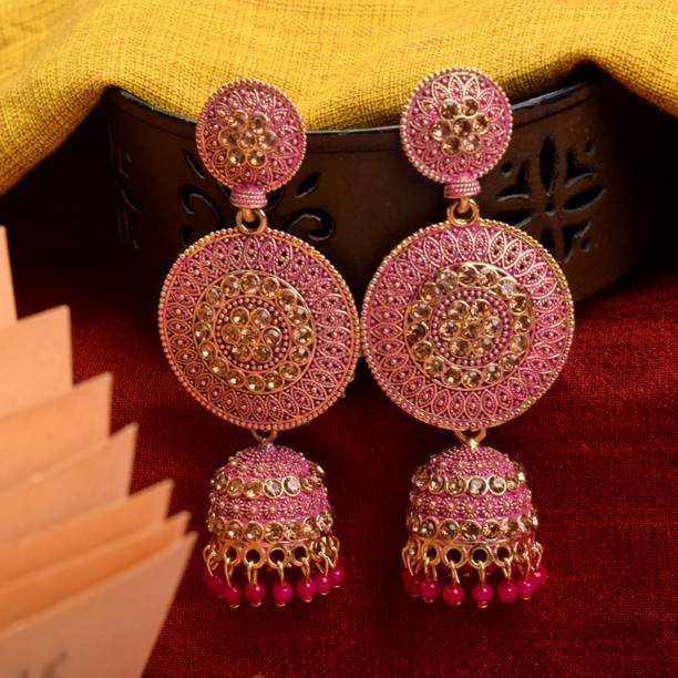 RAJ JEWELLERY Traditional Ethnic Diamond Pink Color Oxidized Jhumka Jhumki Earring for Women Alloy Jhumki Earring, Drops & Danglers, Chandbali Earring