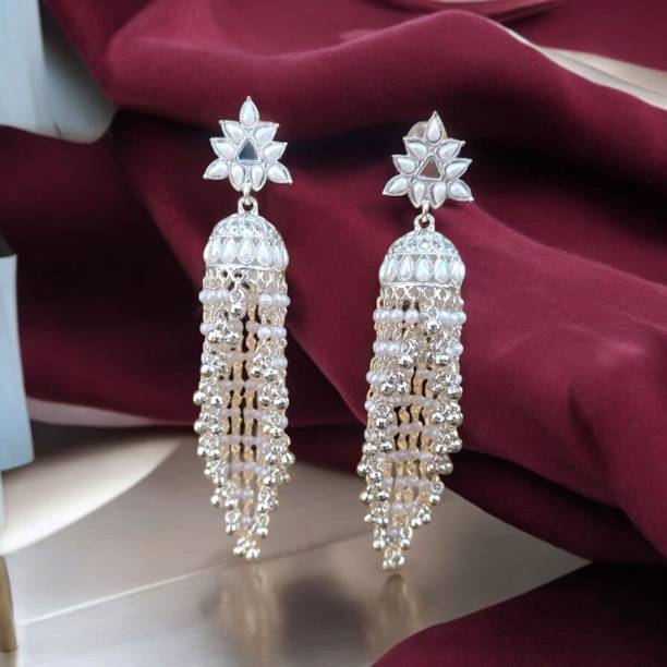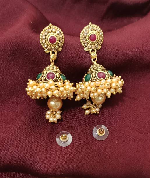 Fashion Theme Earrings Pearl Jhumka Bali Firozi Jhumkas for Women & Girls Pearl Brass Chandbali Earring, Drops & Danglers, Jhumki Earring