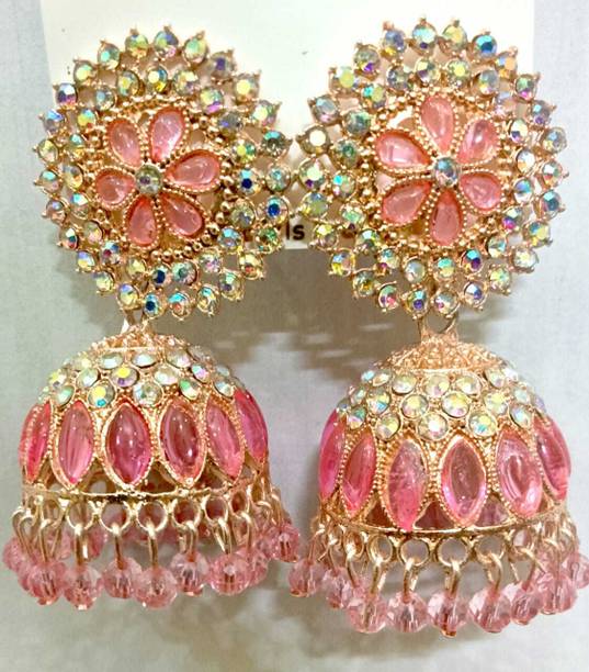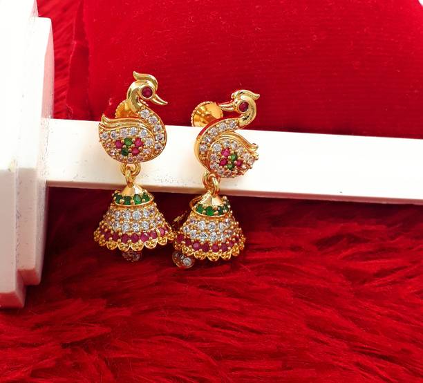 Anujeet Fashion Hub Gold Plated Covering 5 metal Impon AD Stone Jhumka Earrings For Women & Girls Copper Jhumki Earring