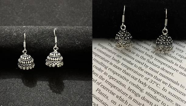Vigilantee Jewels Combo of 4 Pair Oxidised Traditional Silver Combo Jhumki Earrings Set Alloy Beads, Moonstone, Pearl, Zircon Alloy Chandbali Earring, Drops & Danglers, Earring Set, Huggie Earring, Jhumki Earring