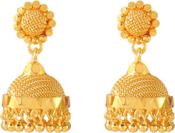 Skumar Traditional Golden Plated Earrings Bali Jhumka Screw Back Ledis Women Girls Brass Jhumki Earring