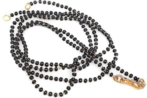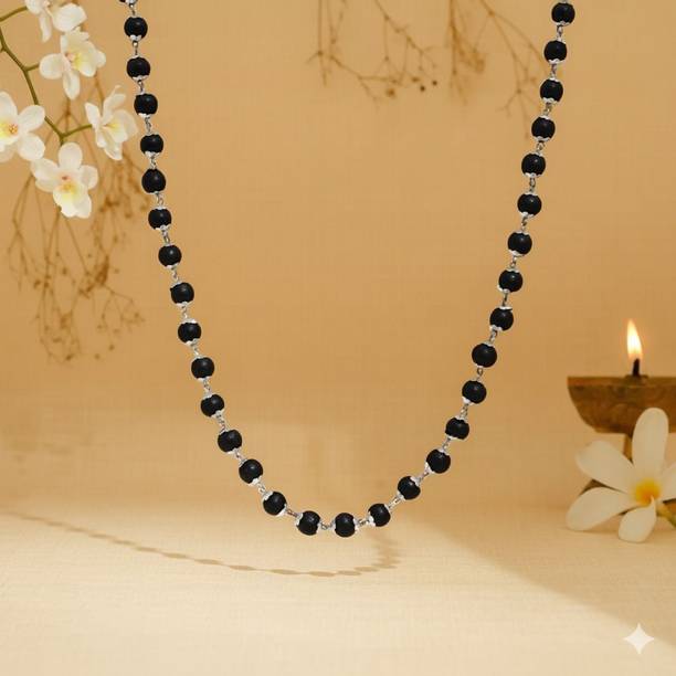 Black beads chains are available in umpteen styles. You have black beads chains which are made up of a cluster of tiny beads to make one relatively chunky neck accessory or choker-style necklaces which feature tiny black beads hanging like pendants around them. Beaded chains which have a dagger for their pendant or ones which are decorated with beads in different colours are other trendy options. Buy black beads chains online to browse through trendy accessories from brands such as Pearlz Ocean, Andaaz, and Divastri at best prices. Price list last updated on 26-Dec-25.