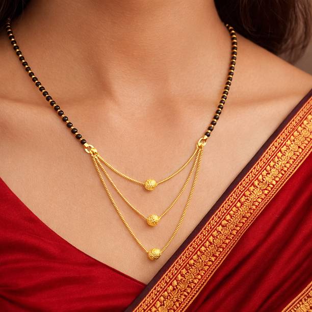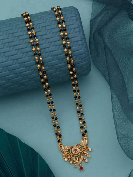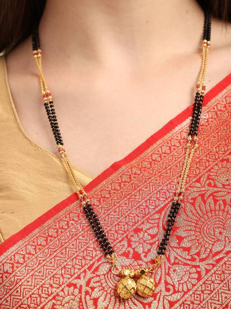 Mangalsutra is probably one of the most important pieces of jewellery that almost every married woman wears. It holds great importance in a Hindu wedding ceremony. A mangalsutra is nothing but a set of black beads strung together in a gold chain. It usually comes with a pendant as well. These black beads gold chain designs may vary depending on new trends and changing preferences of people. Just like toe rings, kumkum and bangles, a mangalsutra is considered to be one of the most significant markers of a woman’s marital status. Many people believe that the gold chain of a mangalsutra represents goddess Parvati and the black beads represent god Shiva. And, together they form a divine energy. When you look for black beads gold chain designs online, you will see various designs of mangalsutra. Brands like Sukkhi, Zaveri Pearls, Yellow Chimes and Voylla have different mangalsutra designs to pick from.