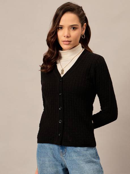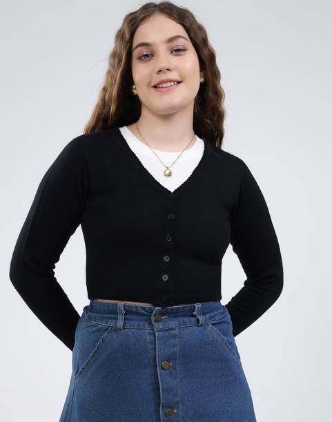 From Forever 21 and Arrow to Bindia and Van Heusen, there are many brands that have chic, classy, and gorgeous black cardigans for women. If you do not like plain black cardigans, then you can choose a black cardigan with stylish patterns and prints. You can team up your cardigan with floral tops, plain tops , T-shirts, and even with kurtas and kurtis as per your wish. If you like layered clothing during winters then cardigans are the your go-to option. Also, you can add a muffler or scarf to enhance your winter look. You can also accessorise your classy black cardigan with chunky necklaces and long chains to make a style statement. When it comes to styles, you can choose a longline cardigan with no buttons, cardigans with zippers, blazer-style cardigans, sleeveless cardigans, and so on and so forth.