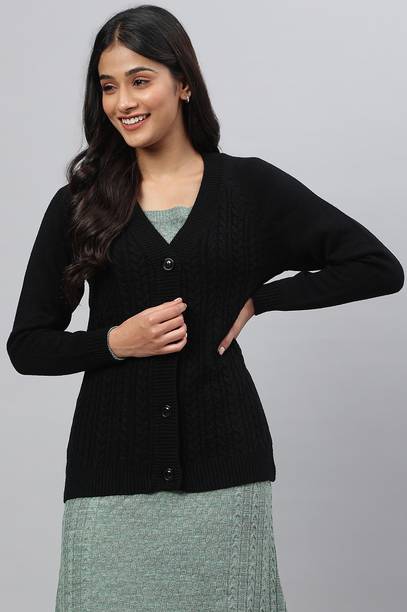 Winter is a great season to flaunt fashion by wearing vibrant cardigans , sweaters , jackets , and scarves . But, if you want to keep it simple yet fashionable and comfortable, then black cardigans are a wonderful option. In fact, during cloudy or windy weather or when there is a nip in the air, nothing else makes you feel as cozy and comfortable as black cardigans for men or women. You can style black cardigans the way you want and look beautiful, stunning, suave, classy, and elegant. Black cardigans are easy to maintain, and they look great with casual and semi-formal attire. For a quick smart look, just wear a black cardigan with a plain V-neck T-shirt and you are ready for your movie date, clubbing with friends, or dinner with your family. You can buy black cardigans for women and men on online shopping sites after checking out the wide variety of designs and styles. There are many brands, such as W, United Colors of Benetton, Vero Moda, Camey, and Colors & Blends, among others, that sell black cardigans online.