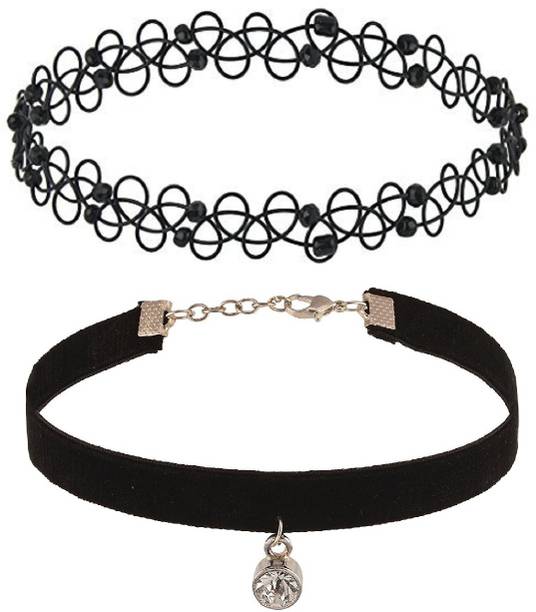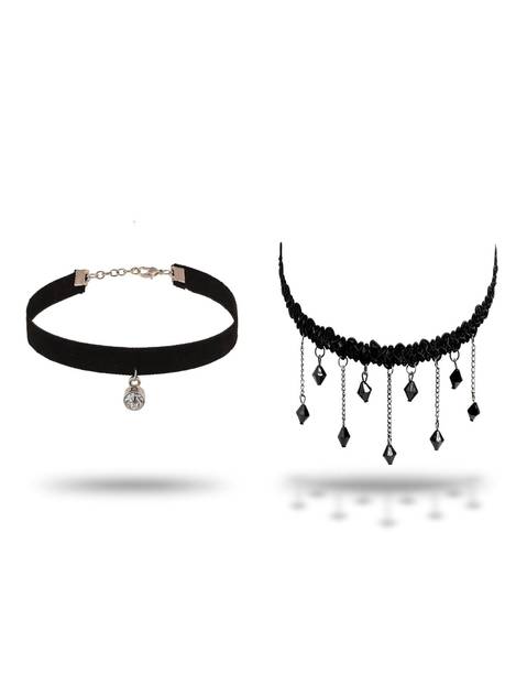 Add a touch of elegance to your attire with black choker necklaces. Look beautiful and stunning by adorning these necklaces available online in various styles, patterns, colours, materials, and more. You can wear these with ethnic and contemporary garments like gowns, short dresses, ghagras, sarees, casual tops, summer dresses, coats, bodysuits, off-shoulder dresses, and more. Style these latest black choker necklaces with your favourite apparel and look gorgeous on every occasion. You can wear these with matching wrist charms, finger ring sets, different types of earrings, and even other necklaces for a unique look. You can wear these to parties, social gatherings, marriage ceremonies, anniversaries, birthdays, college functions, and other events. Choose chokers encrusted with precious stones, plastic composites, oxidised silver jewellery, chunky crystals, traditional styles, tribal designs, and antique looks. The beautiful designs make them a sought after ornament for women of all ages. Choose from exquisite gemstone encrusted options with garnet, onyx, sapphire, topaz, amethyst, crystal, and coral necklaces and look elegant. You can explore the best black choker necklaces online from brands like Shining Diva, Aaishwarya, APARA, YELLOW CHIMES, and FOREVER 21. Add to your shopping cart and place your order for doorstep delivery. The information you are reading has been last updated on 21-Feb-26.