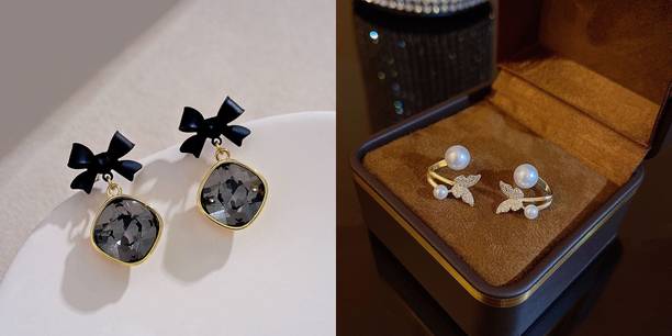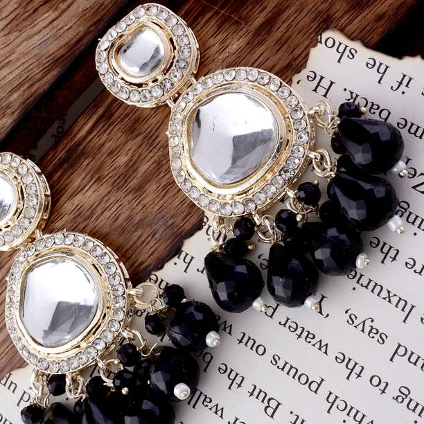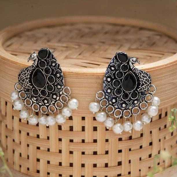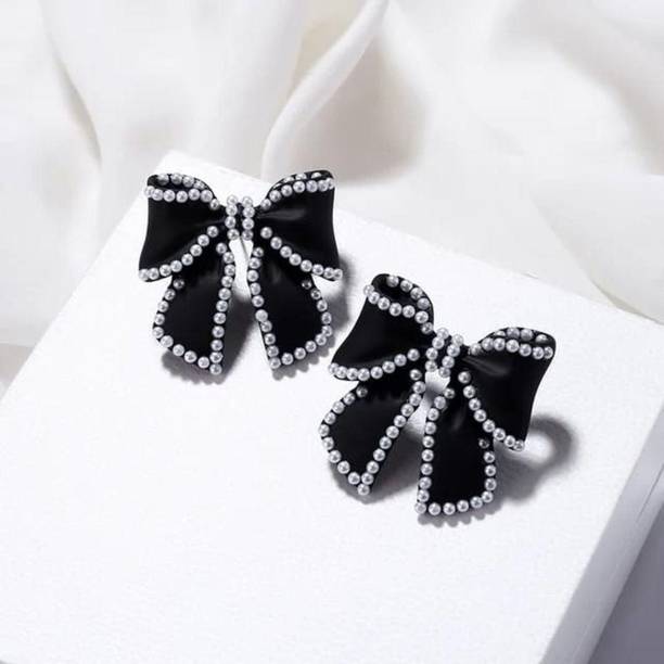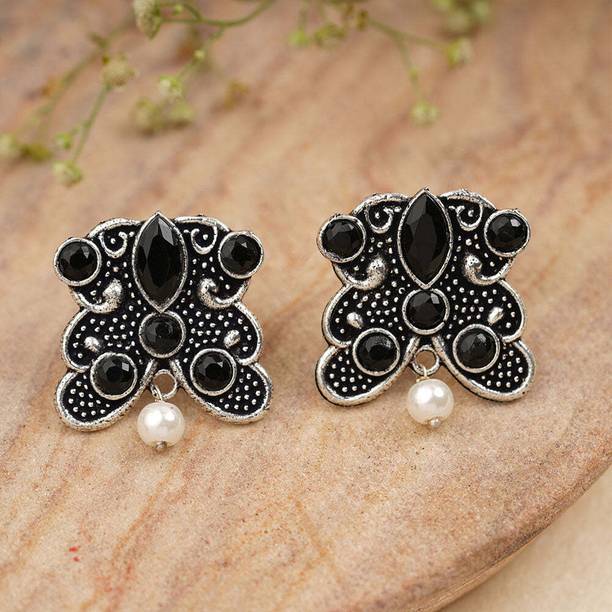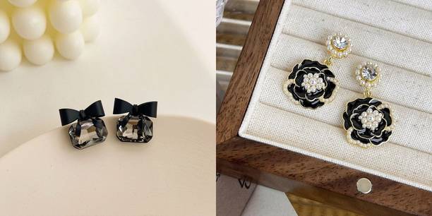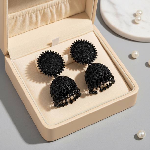Uplift your style with the new and fashionable black earrings. These earrings symbolise a sophisticated style statement for every occasion, whether it is a traditional function or a formal official event. You can get these earrings in a variety of designs, ranging from contemporary push-ball danglers and subtle studs to traditional jhumkas. Explore a variety of designs, from simple and subtle to detailed and expertly crafted earrings. These can add a mysterious charm to your outfit. Whether you are shopping for yourself or thinking of gifting it to your loved ones, these earrings ensure you get the most out of your purchase. These earrings are ideal for adults as well as little ones. Boost your style with earrings that let you show off your fashion sense. They are made with high-quality materials, including acrylic, alloy, aluminium, bone, brass, and bronze. You can get these earrings at varied prices. Stay trendy with the latest styles from brands that offer a wide variety of earrings. The brands include Nilu’s Collection, Divastri, MEENAZ, Vembley, Jewels Galaxy, and many more. Shop for these versatile black earrings online to combine your modern style with a timeless charm. Explore with a few clicks and select the ones you like the best to style with various outfits.
