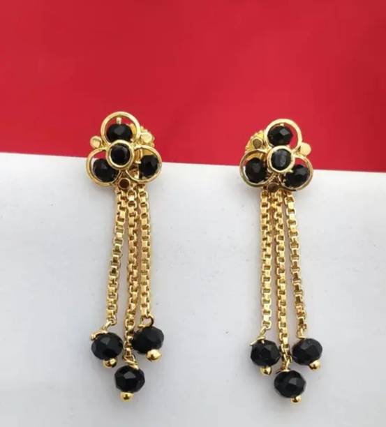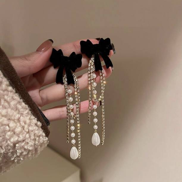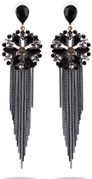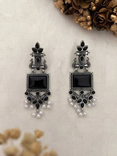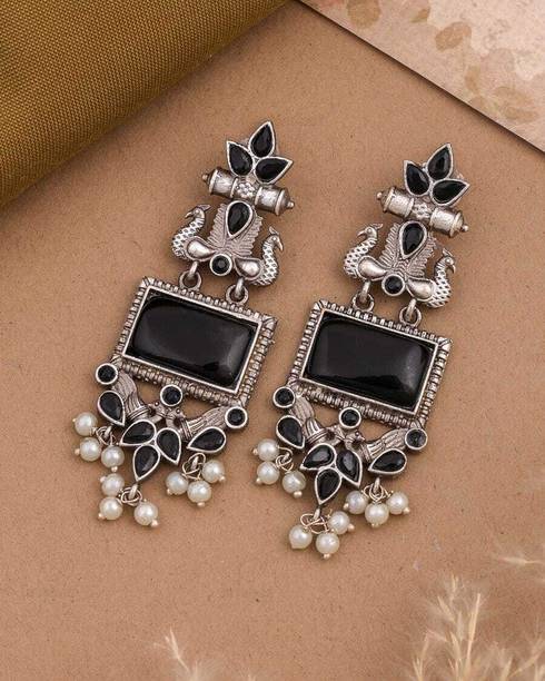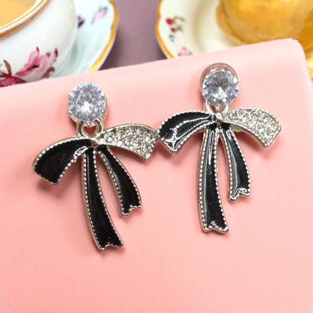 Uplift your style with the new and fashionable black earrings. These earrings symbolise a sophisticated style statement for every occasion, whether it is a traditional function or a formal official event. You can get these earrings in a variety of designs, ranging from contemporary push-ball danglers and subtle studs to traditional jhumkas. Explore a variety of designs, from simple and subtle to detailed and expertly crafted earrings. These can add a mysterious charm to your outfit. Whether you are shopping for yourself or thinking of gifting it to your loved ones, these earrings ensure you get the most out of your purchase. These earrings are ideal for adults as well as little ones. Boost your style with earrings that let you show off your fashion sense. They are made with high-quality materials, including acrylic, alloy, aluminium, bone, brass, and bronze. You can get these earrings at varied prices. Stay trendy with the latest styles from brands that offer a wide variety of earrings. The brands include Nilu’s Collection, Divastri, MEENAZ, Vembley, Jewels Galaxy, and many more. Shop for these versatile black earrings online to combine your modern style with a timeless charm. Explore with a few clicks and select the ones you like the best to style with various outfits.