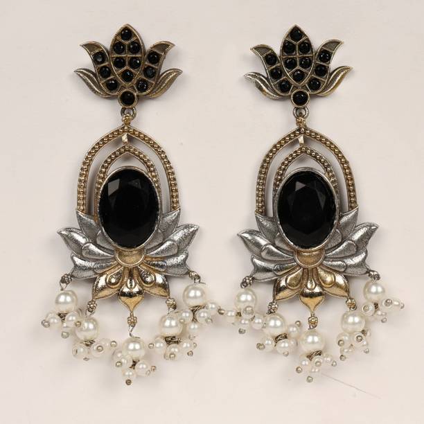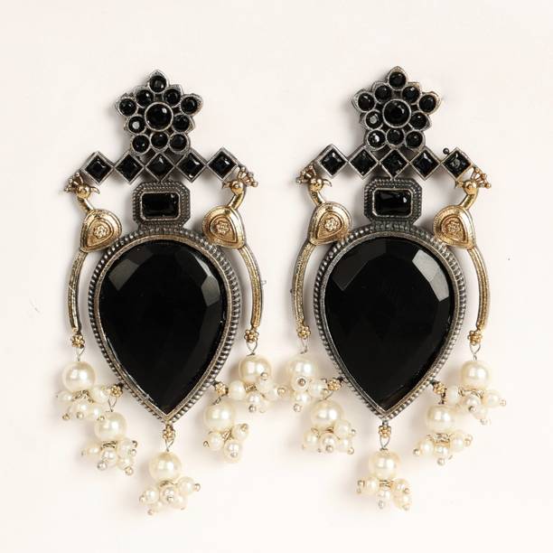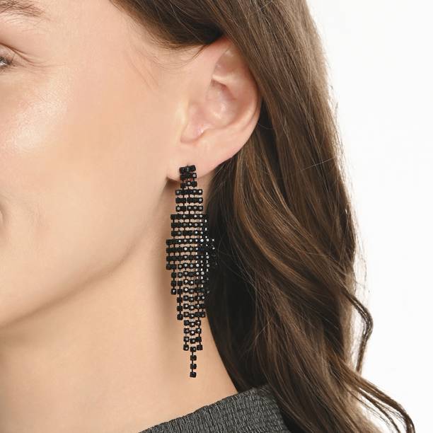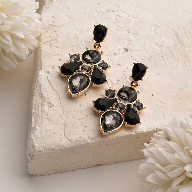 Uplift your style with the new and fashionable black earrings. These earrings symbolise a sophisticated style statement for every occasion, whether it is a traditional function or a formal official event. You can get these earrings in a variety of designs, ranging from contemporary push-ball danglers and subtle studs to traditional jhumkas. Explore a variety of designs, from simple and subtle to detailed and expertly crafted earrings. These can add a mysterious charm to your outfit. Whether you are shopping for yourself or thinking of gifting it to your loved ones, these earrings ensure you get the most out of your purchase. These earrings are ideal for adults as well as little ones. Boost your style with earrings that let you show off your fashion sense. They are made with high-quality materials, including acrylic, alloy, aluminium, bone, brass, and bronze. You can get these earrings at varied prices. Stay trendy with the latest styles from brands that offer a wide variety of earrings. The brands include Nilu’s Collection, Divastri, MEENAZ, Vembley, Jewels Galaxy, and many more. Shop for these versatile black earrings online to combine your modern style with a timeless charm. Explore with a few clicks and select the ones you like the best to style with various outfits.