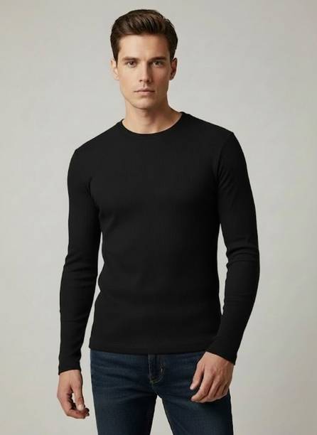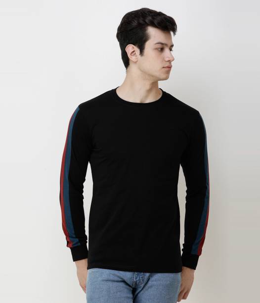 Look dapper by donning a black full sleeve T-shirt. These tees are stylish and ideal for cooler weather. You can pick from an assortment of patterns ranging from colour block to striped, solid to layered, and more in plain full sleeves and raglan sleeves. Pair them with denim or relaxed slacks for a laid-back look when hanging out with pals. Also, they can be styled with casual blazers for a snazzier trendy combination that can be worn to parties and social occasions. Choose from a variety of fantastic printed alternatives to wearing your fandom on your sleeve. Full sleeve T-shirts with iconic motifs and patterns make shopping for the forever fashion simple. They come in a variety of neck types, including polo necks, round necks, collared necks, V-necks, hooded necks, and zip necks. These T-shirts perfectly combine evergreen fashion and everlasting comfort. Explore the (latest) black full sleeve T-shirt new collection online to find the best prices and offers. Brands such as Stylogue, Eyebogler, Force, TRIPR, Jump Cuts, and many more have a wide range of these T-shirts online. Each of these long sleeve T-shirts is ready to let you relax in style. So, buy a black full sleeve T-shirt online from the comfort of your home and enjoy a hassle-free delivery. The information you are reading has been last updated on 21-Mar-26.