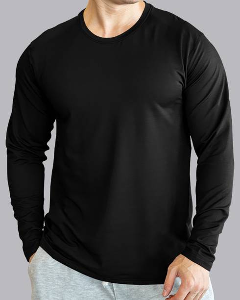 Look dapper by donning a black full sleeve T-shirt. These tees are stylish and ideal for cooler weather. You can pick from an assortment of patterns ranging from colour block to striped, solid to layered, and more in plain full sleeves and raglan sleeves. Pair them with denim or relaxed slacks for a laid-back look when hanging out with pals. Also, they can be styled with casual blazers for a snazzier trendy combination that can be worn to parties and social occasions. Choose from a variety of fantastic printed alternatives to wearing your fandom on your sleeve. Full sleeve T-shirts with iconic motifs and patterns make shopping for the forever fashion simple. They come in a variety of neck types, including polo necks, round necks, collared necks, V-necks, hooded necks, and zip necks. These T-shirts perfectly combine evergreen fashion and everlasting comfort. Explore the (latest) black full sleeve T-shirt new collection online to find the best prices and offers. Brands such as Stylogue, Eyebogler, Force, TRIPR, Jump Cuts, and many more have a wide range of these T-shirts online. Each of these long sleeve T-shirts is ready to let you relax in style. So, buy a black full sleeve T-shirt online from the comfort of your home and enjoy a hassle-free delivery. The information you are reading has been last updated on 20-Oct-25.