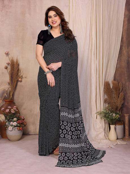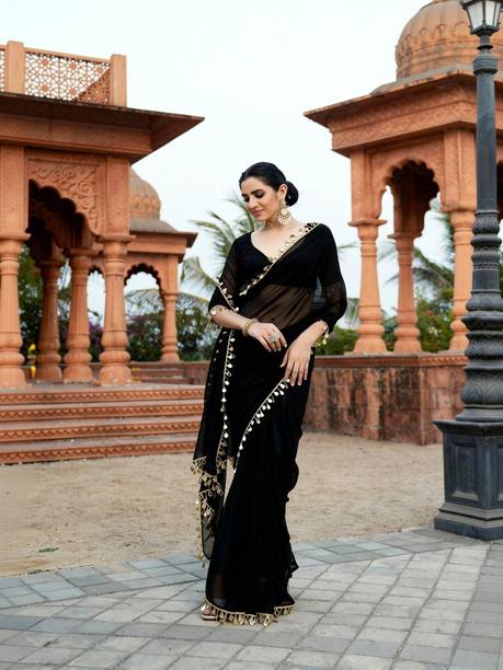 When you think of traditional ethnic wear, you can't miss out on georgette sarees. Black georgette sarees give you a stunning appearance. This lightweight fabric is one of the most versatile materials and is very comfortable to wear. Black georgette sarees can be worn for occasions like a classy party or a formal event. These designer outfits are easy to manage because of their fabric quality. You can opt for a monochromatic look by going for an all-black saree or mix and match with different colours. Since black looks good with all colours, you can play around with the blouse colour and material. These sarees are durable and long-lasting. However, remember to use a light detergent and wash by hand to ensure the fabric doesn’t get damaged. You can find a diverse range of sarees across e-stores, depending on the patterns and the embroidery. Choose from a varied collection of black georgette sarees online from popular brands such as Kedar Fab, Mirchi Fashion, DELIZIA, Diva N Diya, Fevinaa, KWIK’S FASHION, and many more. Pair this classic saree with black metal jewellery to create a captivating and exquisite look. The information you are reading has been last updated on 12-Jan-26.