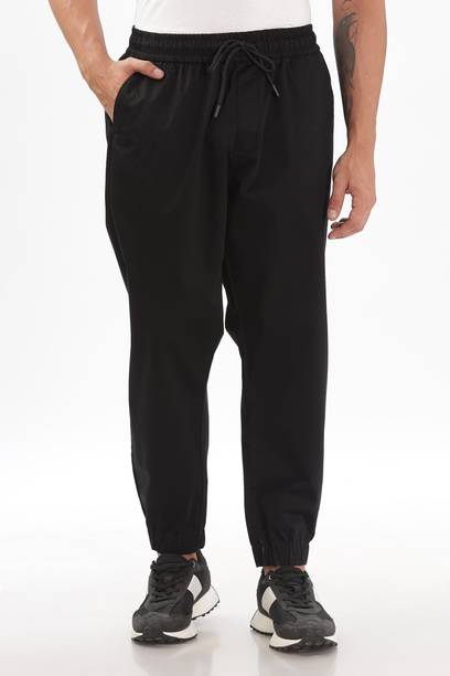 Black joggers for men are the ideal bottoms for runners. They can be worn to run, jog, work out, dance, travel, etc. Due to the comfort level the joggers offer, they can be used as casual dressing or everyday home wear. Sport the black joggers with loafers or sneakers and a T-shirt for everyday use, or rock your looks with boots and a matching blazer for a semi-formal look. The uber-cool pants may also be worn to parties, college, informal get-togethers, etc., with a long-sleeved tee or shirt and loafers. Choose from fits such as skinny, tapered, regular, relaxed, and more. With the classic elastic band at the ankle, the pants look very trendy and smart for people of all ages. A variety of fabrics such as cotton jersey, cotton polyester, denim lycra, hosiery, lycra nylon, etc., are used to manufacture these pants. They are cool, lightweight, and suitable to be worn all year-round. Select the latest black joggers for men's new styles from a plethora of designs and sizes according to your choice and measurement. Buy the black joggers for men online from popular brands like Allen Solly, M7 by Metronaut, U. S. POLO ASSN, Mast & Harbour, United Colors of Benetton, etc. Order them online at the best prices for easy doorstep delivery. The information you are reading has been last updated on 07-Oct-25.