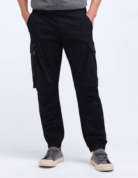 Black joggers for men are the ideal bottoms for runners. They can be worn to run, jog, work out, dance, travel, etc. Due to the comfort level the joggers offer, they can be used as casual dressing or everyday home wear. Sport the black joggers with loafers or sneakers and a T-shirt for everyday use, or rock your looks with boots and a matching blazer for a semi-formal look. The uber-cool pants may also be worn to parties, college, informal get-togethers, etc., with a long-sleeved tee or shirt and loafers. Choose from fits such as skinny, tapered, regular, relaxed, and more. With the classic elastic band at the ankle, the pants look very trendy and smart for people of all ages. A variety of fabrics such as cotton jersey, cotton polyester, denim lycra, hosiery, lycra nylon, etc., are used to manufacture these pants. They are cool, lightweight, and suitable to be worn all year-round. Select the latest black joggers for men's new styles from a plethora of designs and sizes according to your choice and measurement. Buy the black joggers for men online from popular brands like Allen Solly, M7 by Metronaut, U. S. POLO ASSN, Mast & Harbour, United Colors of Benetton, etc. Order them online at the best prices for easy doorstep delivery. The information you are reading has been last updated on 09-Oct-25.
