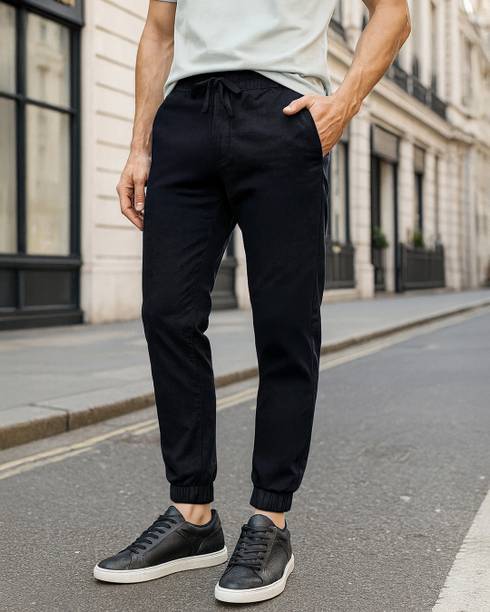 Black joggers for men are the ideal bottoms for runners. They can be worn to run, jog, work out, dance, travel, etc. Due to the comfort level the joggers offer, they can be used as casual dressing or everyday home wear. Sport the black joggers with loafers or sneakers and a T-shirt for everyday use, or rock your looks with boots and a matching blazer for a semi-formal look. The uber-cool pants may also be worn to parties, college, informal get-togethers, etc., with a long-sleeved tee or shirt and loafers. Choose from fits such as skinny, tapered, regular, relaxed, and more. With the classic elastic band at the ankle, the pants look very trendy and smart for people of all ages. A variety of fabrics such as cotton jersey, cotton polyester, denim lycra, hosiery, lycra nylon, etc., are used to manufacture these pants. They are cool, lightweight, and suitable to be worn all year-round. Select the latest black joggers for men's new styles from a plethora of designs and sizes according to your choice and measurement. Buy the black joggers for men online from popular brands like Allen Solly, M7 by Metronaut, U. S. POLO ASSN, Mast & Harbour, United Colors of Benetton, etc. Order them online at the best prices for easy doorstep delivery. The information you are reading has been last updated on 06-Oct-25.