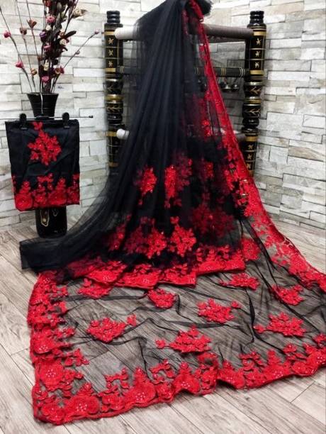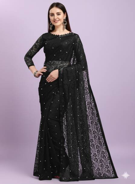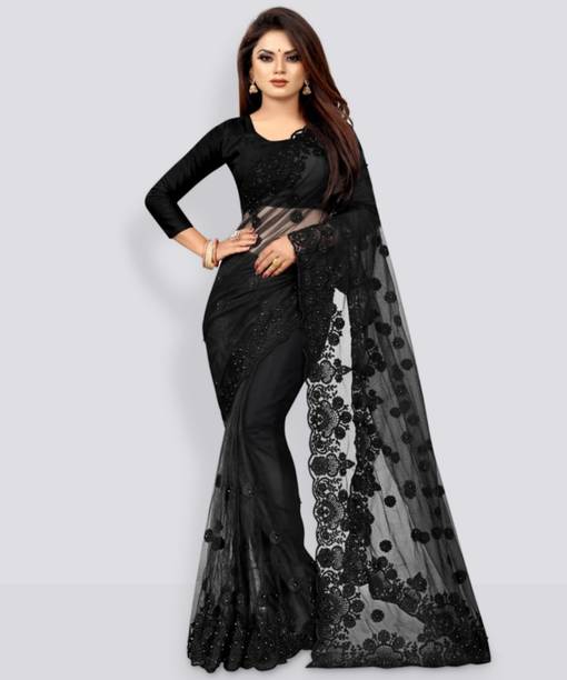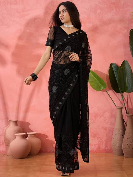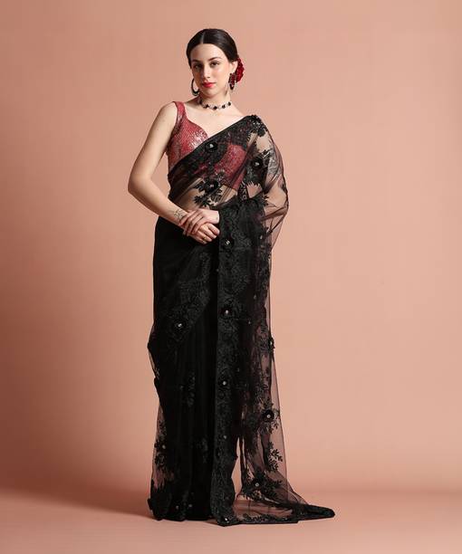 Every Indian woman's go-to choice of traditional garment is mostly a saree. Black net sarees make a woman look graceful and beautiful and can be worn for almost all occasions. You can choose from a lot of varieties in this design. You can opt for an embellished saree with silver work on it. Embroidered sarees are also available in these designs. Another option is the new self-design net saree in black. You can opt for the classic all-black saree or choose a combination of black and other vibrant colours. If you are going for the all-black option, pair the saree with heavy silver or oxidised jewellery to add some shine to your look. You can also wear this net saree with a contrasting blouse to make your ethnic look stand out. Net sarees can be worn in any weather but they are ideal for summers as the fabric is breathable. You can choose from various prints like floral print, hand-painted, embroidered, blocked printed, polka print, solid, and many more. Choose from the latest and trendy black net sarees online from popular brands such as 3SIX5, ASHVMEGH, Divastri, Fabwomen, Mirchi Fashion, SAARA, and more. Choose your favourite saree online and place your order online based on your preferences.