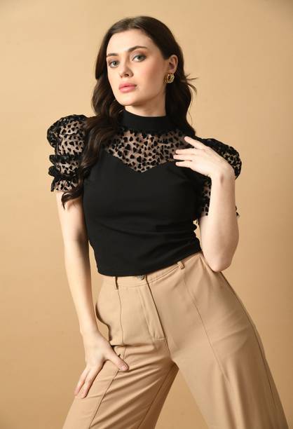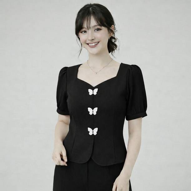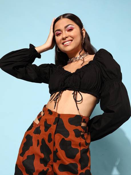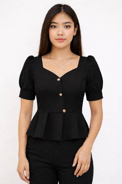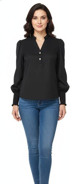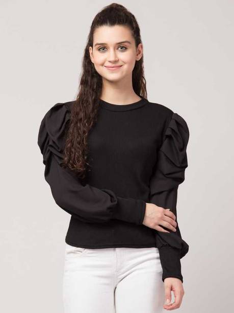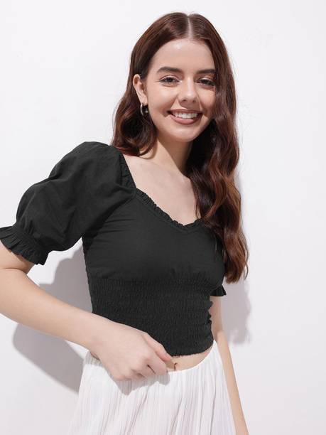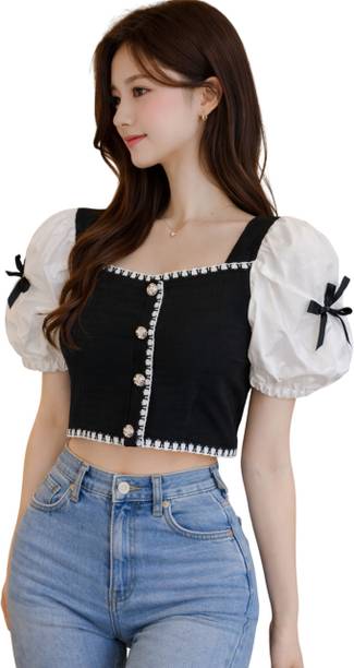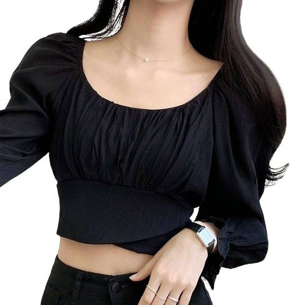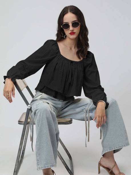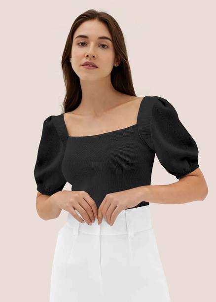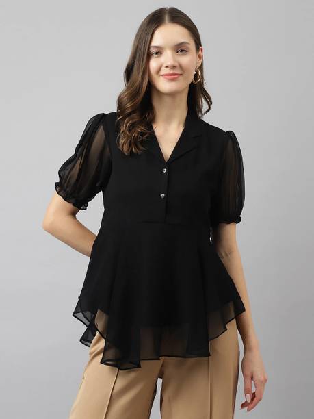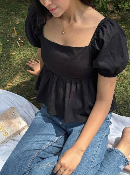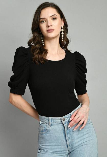 Getting ready for a party can be a task, especially when you don't have proper clothes in your collection. A black puff sleeve top for women can make you look party-ready and stylish. Themes like fashion crops, floral AOP tops, victorian, printed ruffles, stripe print blouses, ditsy conversational AOP, and solid summer blouson options are available online. To match your fashion requirements, you will find top types like Bardot, high low, bralette, blouson, asymmetric, cinched waist, ruffled, strappy, swing, tank, etc. You can find stylish fits of tops like regular, slim, relaxed and oversize. Check the size options available online before adding them to the cart. Scroll through the ratings, reviews, and prices of black tops before choosing a top online. Buy the tops based on the fabric type, such as chambray, chiffon, cotton blend, poly crepe, georgette, net, silk, satin, etc. You can find stylish neckline options like a scoop, halter, keyhole, mandarin, choker, boat, Peter pan, ruffle, square, tie-up, etc. Wear a puff sleeve top with denim pants for a sophisticated look. Browse and choose a black puff sleeve top for women online from brands like Harpa, Istyle Can, Clothzy, Sheetal Associates, Selvia, etc. Choose a top that matches your personality and make a secure payment for easy home delivery.