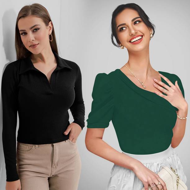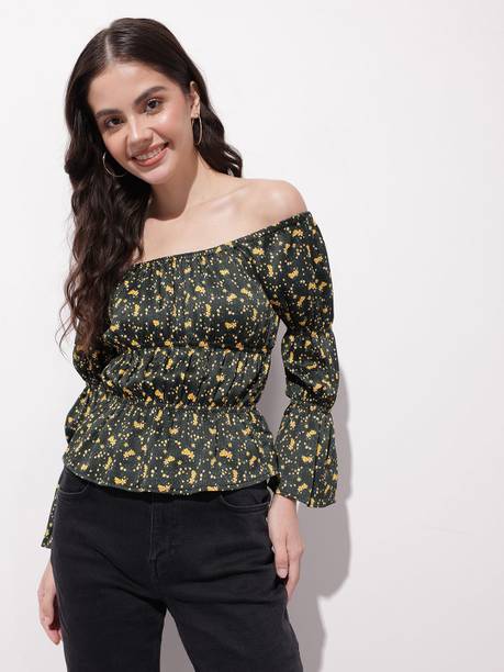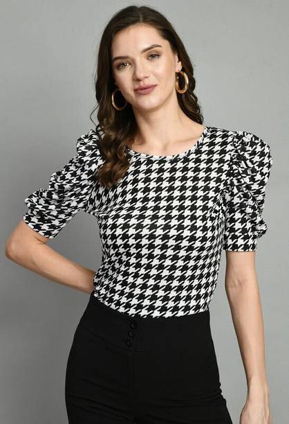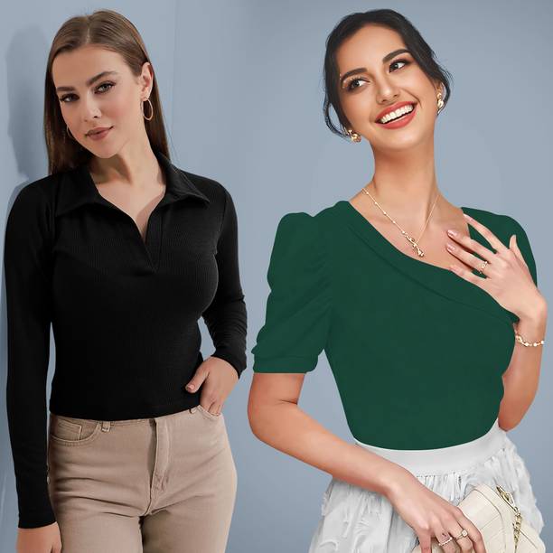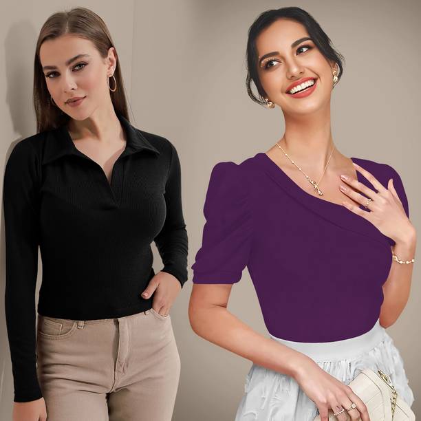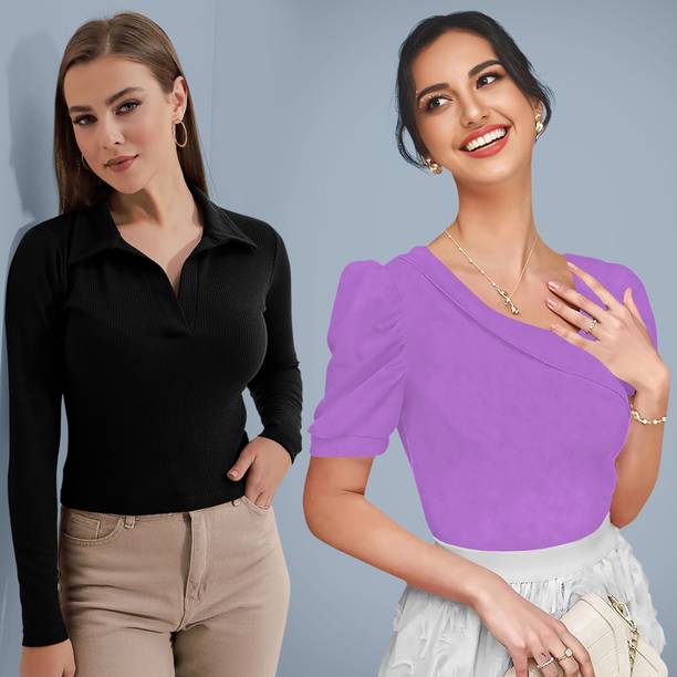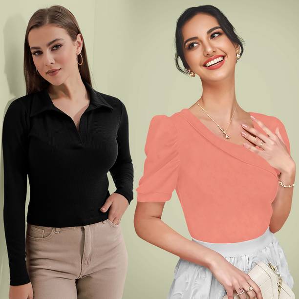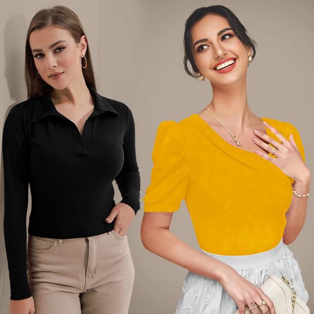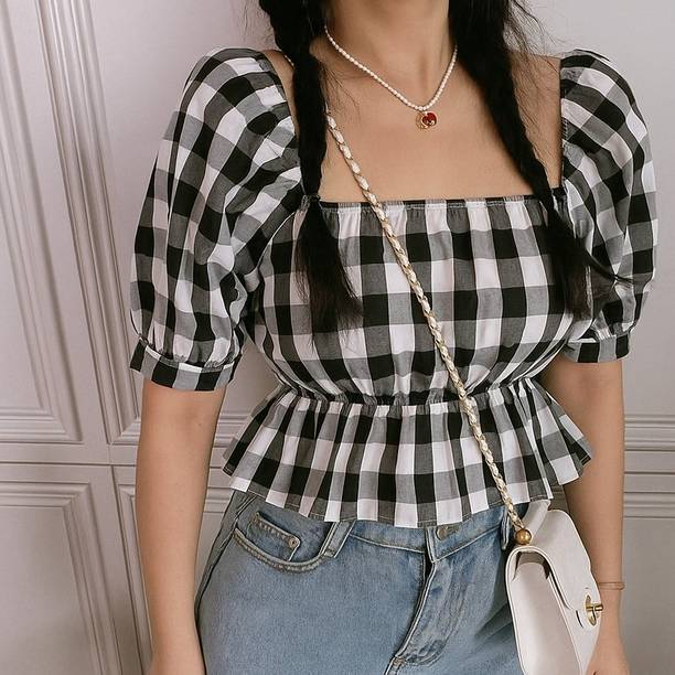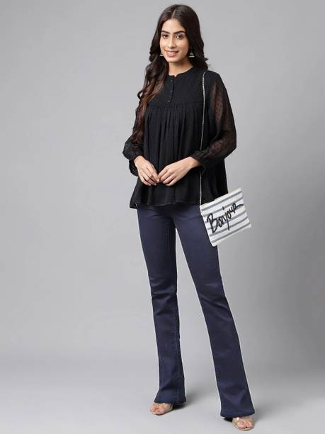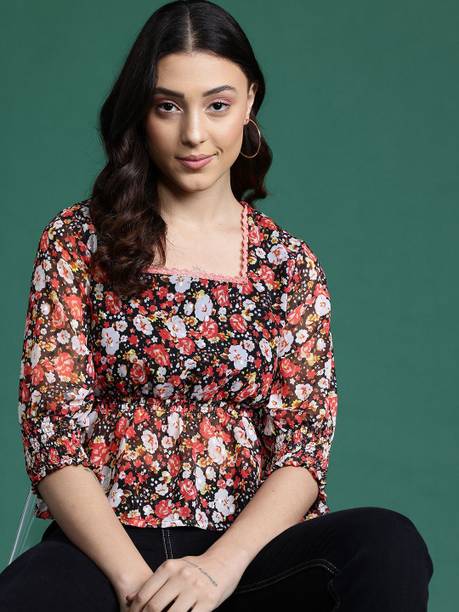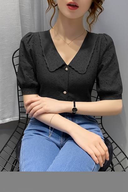 Getting ready for a party can be a task, especially when you don't have proper clothes in your collection. A black puff sleeve top for women can make you look party-ready and stylish. Themes like fashion crops, floral AOP tops, victorian, printed ruffles, stripe print blouses, ditsy conversational AOP, and solid summer blouson options are available online. To match your fashion requirements, you will find top types like Bardot, high low, bralette, blouson, asymmetric, cinched waist, ruffled, strappy, swing, tank, etc. You can find stylish fits of tops like regular, slim, relaxed and oversize. Check the size options available online before adding them to the cart. Scroll through the ratings, reviews, and prices of black tops before choosing a top online. Buy the tops based on the fabric type, such as chambray, chiffon, cotton blend, poly crepe, georgette, net, silk, satin, etc. You can find stylish neckline options like a scoop, halter, keyhole, mandarin, choker, boat, Peter pan, ruffle, square, tie-up, etc. Wear a puff sleeve top with denim pants for a sophisticated look. Browse and choose a black puff sleeve top for women online from brands like Harpa, Istyle Can, Clothzy, Sheetal Associates, Selvia, etc. Choose a top that matches your personality and make a secure payment for easy home delivery.
