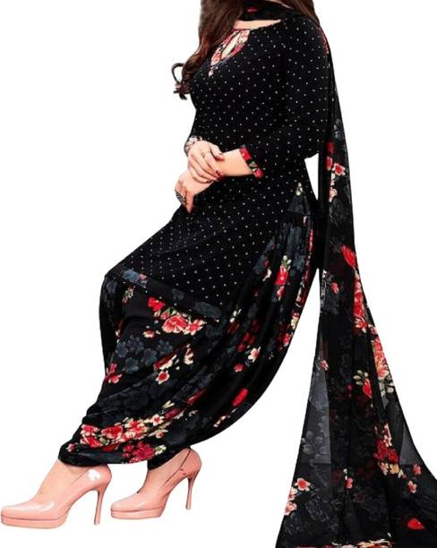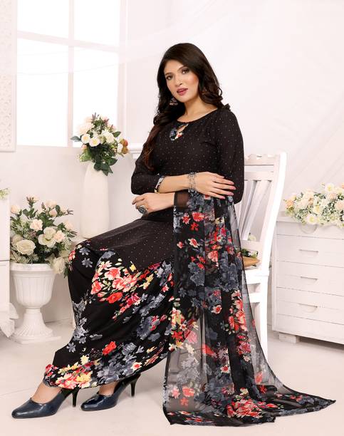 Exquisitely antique, traditional and absolutely stylish are a few words/phrases one can use to describe a black Punjabi suit. Created, curated and introduced by the Nawab of Patiala, Punjabi suits have been around since time immemorial. Black Punjabi suits are popular nation-wide for the sheer elegance and royalty that they portray. These suits are available in a wide range of vibrant colors, patterns and styles. This royal attire has since then undergone multiple stylistic transitions. A traditional dress of the state of Punjab, they are also available with many different types of embellishments, such as hand work, prints, bandhej, tie & dye, embroidery, mirror work, zardozi, stone work, gotta patti, meenakari, kundan, resham and many more. These punjabi suits can today be found in so many different types of materials, such as brocade, silk, chiffon, net, cotton, etc. This makes them suitable for various occasions and functions.