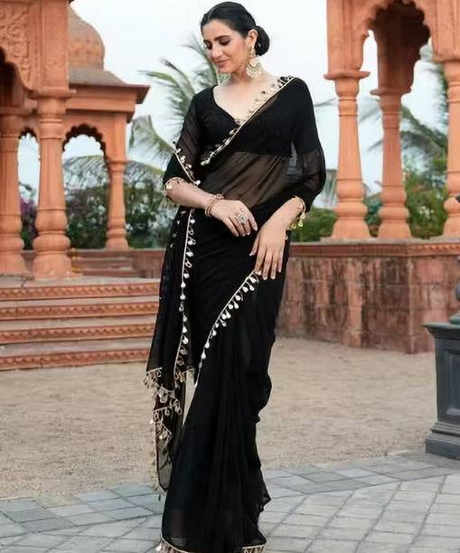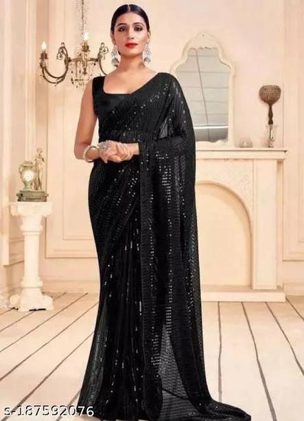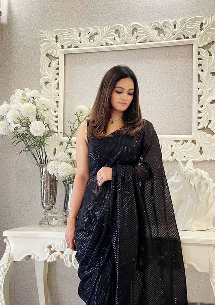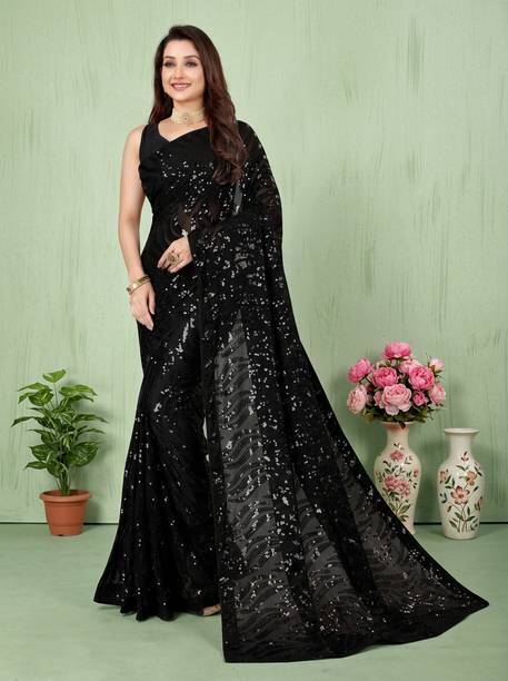 Look like royalty this season with black sequin sarees. These sarees add to the glamour quotient of the traditional Indian weave. The material of these sarees is soft and can be worn in any season. The sequin sarees are a popular choice because they are form-fitting and drape beautifully across the body. These sarees can be worn on occasions as well as formal events, parties, and festivals. You can accessorise these sarees with heavy metal jewellery or classy and simple necklace sets. With a glossy, shiny, and rich look, the colour black gives a slimmer appearance and looks gorgeous. The zari and mirror work on the sarees look stunning and can help you stand out at a party. You can choose from a variety of the latest black sequin sarees and pick your favourites according to your tastes. Some of the popular brands you can shop for black sequin sarees online from are DELIZIA, MALOFY, Rensa, ngaShobha, Kalanjali, and GLORYANCE. You can also gift these gorgeous weaves to your family and friends. Pick from the e-store and place an order to get them delivered directly to your doorstep. The information you are reading has been last updated on 03-Mar-26