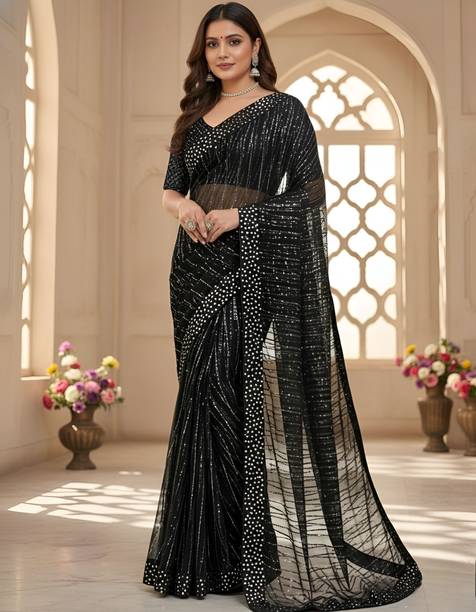 Look like royalty this season with black sequin sarees. These sarees add to the glamour quotient of the traditional Indian weave. The material of these sarees is soft and can be worn in any season. The sequin sarees are a popular choice because they are form-fitting and drape beautifully across the body. These sarees can be worn on occasions as well as formal events, parties, and festivals. You can accessorise these sarees with heavy metal jewellery or classy and simple necklace sets. With a glossy, shiny, and rich look, the colour black gives a slimmer appearance and looks gorgeous. The zari and mirror work on the sarees look stunning and can help you stand out at a party. You can choose from a variety of the latest black sequin sarees and pick your favourites according to your tastes. Some of the popular brands you can shop for black sequin sarees online from are DELIZIA, MALOFY, Rensa, ngaShobha, Kalanjali, and GLORYANCE. You can also gift these gorgeous weaves to your family and friends. Pick from the e-store and place an order to get them delivered directly to your doorstep. The information you are reading has been last updated on 15-Jan-26