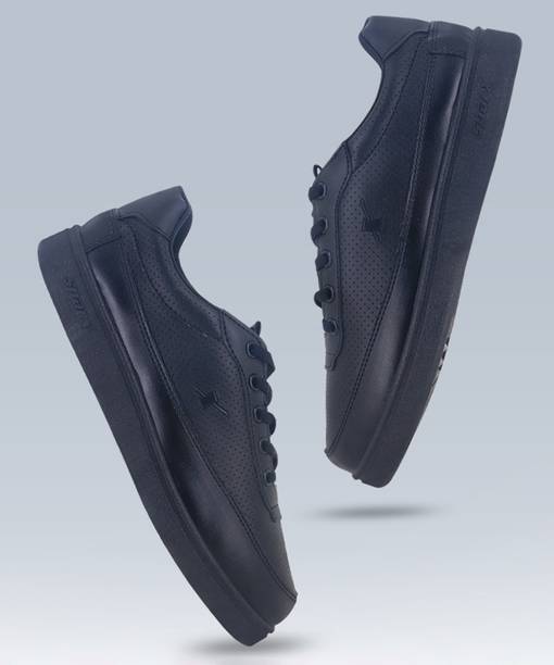 The black sneakers for men are a wonderful blend of style and contemporary appeal, crafted to cater to the demands of the fashionistas. Whether you're getting ready for a night out with your friends or a casual weekend getaway, these trendy and sharp shoes are the ideal choice to elevate your fashion game. Moreover, the allure of black sneakers lies in their versatility. These shoes can transition effortlessly from a long day at work to an amusing hangout session with your near and dear ones. You can wear them with a crisp shirt and trousers for a professional look or team them with your favourite jeans or a leather jacket for a stylish evening look. Besides, these sneakers are designed with both aesthetics and ergonomics in mind. Cushioned insoles, high-quality materials, and robust build ensure that you can wear them all day long without giving up on comfort. Also, by shopping for these latest black sneakers for men online, you can explore a wide range to compare the features of different pairs. You can read the product description to know more about the availability of offers and prices of the pairs. Some of the brands that offer black sneakers online are AADI, Bruton, PUMA, Magnolia, Arivo, and more. So, explore your options to find the ones you prefer the best.