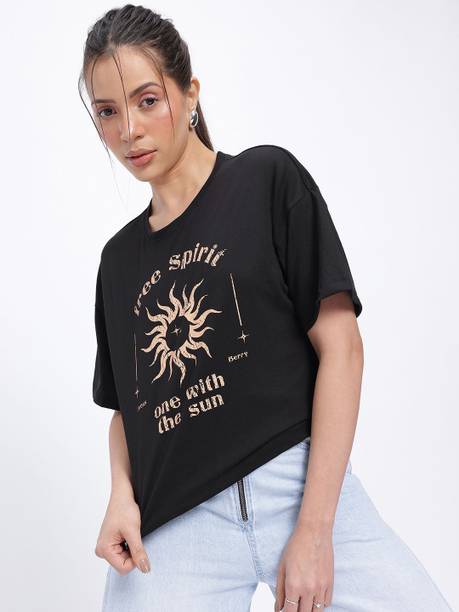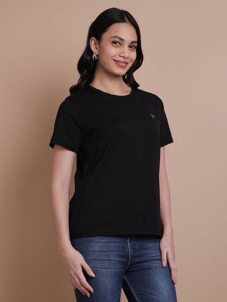 Opt for a bolder look with these black T-shirts for women. If you are looking for an all-in-one tee, then a black coloured tee is your perfect choice. They can be your go-to option for various occasions, and they pair with almost any outfit. You can choose from a variety of new themes and patterns, sleeve types, neck types, and many more. Add these latest black T-shirts for women to your casual collection, and never miss out on any impromptu casual dates and outings. You can pair this black T-shirt with skinny or ripped jeans, canvas, and a cross-body bag for an elegantly chic and bold look. If you are a traveller, black and other darker shades can enhance your travelling experience by camouflaging any stains and debris. They can also be your rescue and base T-shirt during special occasions and confusing times. You can choose from minimalistic solid plain black t-shirts or printed ones that best suit your tastes. You can also transform a simple black T-shirt into a cute crop top with simple knots and tucks. You can buy black t-shirts for women online at the best price and offer from brands such as GIRLS SHOPPIE, Young trendz, Kook N Keech, BEWAKOOF, FLEXIMAA, and many more. The information you are reading has been last updated on 08-Jan-26.